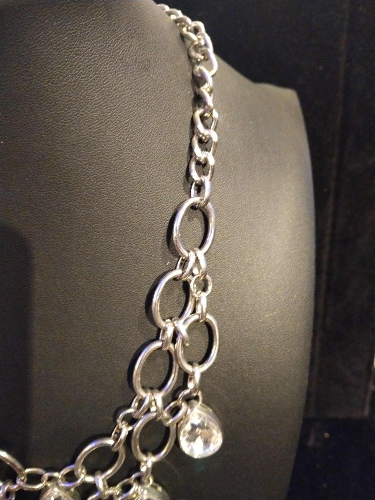 Elevate your jewelry collection with the Paparazzi "Blockbuster Show-Stopping Shimmer" Crystal & Silver Necklace. This stunning piece features dramatic faux rhinestone teardrops suspended from a chain that is both shimmery and eye-catching. The necklace is designed in a silver color that complements the white teardrop gems, creating an elegant and refined look that is perfect for any occasion. Does not have Paparazzi tag. Please see photos for exact condition. All offers considered. Will combine shipping on multiple items.