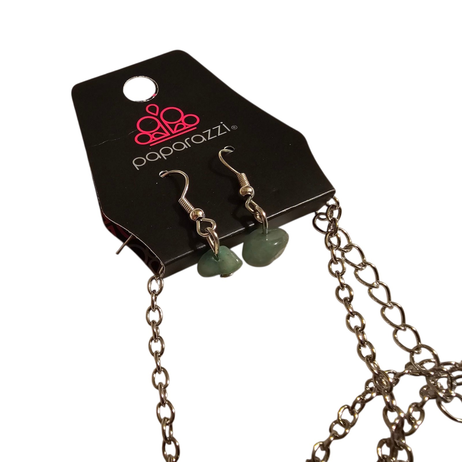✨️Paparazzi 2 Piece Jewelry Set; Necklace and Earrings ✨️Listen To Your Soul set ✨️Infused with a multicolored collection of natural stone beads and pebbles, stacks of textured silver charms and mismatched wooden beads create earthy tassels at the bottom of a silver beaded teardrop frame. Enhanced with a shiny white threaded tassel, the whimsical fringe swings from the bottom of an extended silver chain for a seasonal finish. Features an adjustable clasp closure. ✨️NWT! ✨️This is a very long Necklace. Measurements shown are with the Necklace closed on its tightest loop so there is potential for it to be longer. ❤️From a smoke-free, pet-loving home but pets are kept away from my items. Please see all photos as this is the exact item you will receive in the exact condition shown❤️