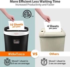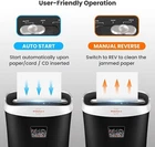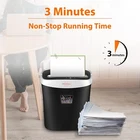 P-4 Higher Security level: This crosscut paper shredder takes max 10-sheet of 20-pound bond paper down to 0.16 inches by 1.4 inches (4 by 36 mm) at a time, no need to remove staples or clips. Also shreds credit card, CD, junk mail (one at a time) Longer Life Span: This US patented cutter can prevent 99% damages to shredder from paper jams and prolong its life span. SEVERAL small paper particles might be left in the basket or cutter due to full quality test by manufacturer 3 Minutes Shredding: This paper shredder features extra fast shredding speed with 3 minutes running time and 40 minutes cooling cycle. For safety concern, if it keeps shredding over its maximum working time, shredder will be overheating, after 40 minutes cooling cycle, it can work normally. Also equipped with overheat LED indicator Easy Emptying: This small paper shredder comes with 3.9 gallons bin and portable handle that offer less frequent and easy emptying. Transparent window helps to see when it is full. Also, THIS SHREDDER DO NOT NEED LUBRICANTS Convenient Design: The heavy duty shredder has 3-mode control switches (Auto, Off, Rev); Auto start, stop and manual rev functions simplify shredding and paper jam clearing processes, release you from the frustration of jamming. It has 1-Year protection