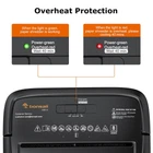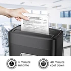 8-Sheet Shredding Capacity: This paper shredder for home can shred 8 sheets of paper (letter size, 75g/m²) at one time, also can shred credit cards (one at a time), staples, paper clips or documents (but not suitable for metal credit cards) Cross Cut Shredder: Turn paper into small pieces of 13/64 by 45/64" inches(5 by 18mm) ; Meets security level P-4 standards to keep your information safe 4 Minutes On and 40 Minutes Cool Down: This small shredder can continuously shred up to 180 sheets of paper (up to 8 sheets at a time) for 4 minutes. Overheating requires 40 minutes of cooling time Easy to Use: Automatic start and manual reversal to clear paper jams, along with overheating protection. Make the shredder suitable for home use Product Dimensions: 7.46 x 12.36 x 15.31 inches (WxLxH) Quality Tested: Before shipping, we test every paper shredder, which means you may see some paper shreds from testing Professional Service: If you have any questions during use, please tell us through Amazon, we have professional customer service to help you within 24hrs