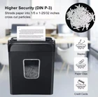 【Crosscut Paper & Credit Card Shredder】Bonsaii home paper shredder, shreds up to 6 sheets of paper at one time (Max 36 Sheets in one minute) into tiny pieces measuring 13/64 x 45/64 inches (5x18mm), also destroys documents/staples/credit cards/junk mail without plastic film, etc. 【Compact Sizes】The home shredder comes with portable handle design and small size of 14.1 x 11.8 x 7 inches, you can place it in the corner or under the desk. Perfect for home or small home office. 【3-Minute Continuous Shredding】This small shredder can continuously shred about 100 sheets of paper for in 3mins. If keeps shredding over 3mins may overheat and automatically shut down, the unit enters the overheat protection, requiring 40 mins of cooling before next working. 【Easy Operation & Safe Protection】Auto start/stop and manual-reverse function protect the paper shredder from the frustration of paper jams. Overheat protection function tackle the trouble in using the shredder and prolong its lifetime. The document shredder will stop working once you lift the head, keeping you safe. 【3.4 Gal Transparent Wastebasket】The crosscut shredder with 3.4 gallon wastebasket can hold 180 sheets of A4 paper for less frequent and easy emptying. Large transparent window makes it easy to see when it is full. 【Professional Service】Bonsaii provides 1-Year limited Protection for your shredders for home office heavy duty. If you have any questions, please get in touch with us. Important Note: We test every shredder before shipping, which means you may see some paper shreds from the testing.