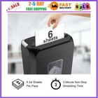 Paper Shredder Cross Cut Commerical Office DVD CD Credit Card Heavy Duty Destroy 【P-4 High Security Level】 The Bonsaii paper shredder can shred up to 5-6 sheets of paper at a time into small pieces measuring 13/64 x 45/64 inches (5x18mm). 【Portable Design】 The home shredder features a portable handle design and compact dimensions of 14.1 x 11.8 x 7 inches, allowing you to place it in a corner. 【Easy Operation】 Auto start/stop and manual-reverse functions protect the paper shredder from the frustration of paper jams. 【Crosscut Shredder for Home】 The crosscut shredder with a 3.4-gallon wastebasket can accommodate 180 sheets of A4 paper,