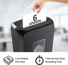 【Crosscut Paper & Credit Card Shredder】Bonsaii home paper shredder, shreds up to 6 sheets of paper at one time (Max 36 Sheets in one minute) into tiny pieces measuring 13/64 x 45/64 inches (5x18mm), also destroys documents/staples/credit cards/junk mail without plastic film, etc. 【Compact Sizes】The home shredder comes with portable handle design and small size of 14.1 x 11.8 x 7 inches, you can place it in the corner or under the desk. Perfect for home or small home office. 【3-Minute Continuous Shredding】This small shredder can continuously shred about 100 sheets of paper for in 3mins. If keeps shredding over 3mins may overheat and automatically shut down, the unit enters the overheat protection, requiring 40 mins of cooling before next working. 【Easy Operation & Safe Protection】Auto start/stop and manual-reverse function protect the paper shredder from the frustration of paper jams. Overheat protection function tackle the trouble in using the shredder and prolong its lifetime. The document shredder will stop working once you lift the head, keeping you safe. 【3.4 Gal Transparent Wastebasket】The crosscut shredder with 3.4 gallon wastebasket can hold 180 sheets of A4 paper for less frequent and easy emptying. Large transparent window makes it easy to see when it is full. 【Professional Service】Bonsaii provides 1-Year limited Protection for your shredders for home office heavy duty. If you have any questions, please get in touch with us. Important Note: We test every shredder before shipping, which means you may see some paper shreds from the testing. Product Description Add to Cart Add to Cart Add to Cart Add to Cart Customer Reviews 4.4 out of 5 stars 55,922 4.5 out of 5 stars 5,105 4.4 out of 5 stars 18,513 4.5 out of 5 stars 4,163 Price $29.74 $ 29 . 74 $29.99 $ 29 . 99 $42.49 $ 42 . 49 $59.99 $ 59 . 99 Cutting capacity 6-sheet 8-sheet 10-sheet 12-sheet Cutting type Cross-cut Strip-cut Cross-cut Cross-cut Cutting size 13/64 x 45/64 inches 15/64 x 11-11/16 inches 13/64 x 1- 37/64 inches 13/64 x 51/64 inches Security level P-4 P-2 P-3 P-4 Shred functions Paper/credit cards/clips Paper/credit cards/clips/staples/CDs/DVDs Paper/credit cards/clips/staples Paper/credit cards/clips/staples Duty cycle (mins) 4 on/40 off 2 on/60 off 4 on/40 off 5 on/40 off Bin capacity 3.4 Gallons 3.4 Gallons 5.5 Gallons 5.5 Gallons Noise level 70 dB 75 dB 70 dB 70 dB Shreds up to 5-6 sheets at a time Overheating protection 3.4 Gallons transparent window bin. Portable handle for lift 7x24 hour online service 1 Year limited Protection Home office shredder has the Jam free and overheated protection function, it is a good helper for your life. Cross-cut Shredder perfectly protects your privacy (security level P-4), helps you minimize information leakage. Overheat Protection Function If the shredder runs continuously for more than 3 mins, may overheat. Please shut down the machine and cool it for 40 mins to recover. Auto Star and Manual Reverse Once detects papers, it will start to auto shred, when shred papers are more than the maximum capacity, you can use Rev mode to clean jam. High-Security P-4 Level This shredder can easily crush paper, staples, paper clips, can also destroy ATM receipts, credit cards, Except old newspapers. IMPORTANT Q&A: Q1: Why doesn't the shredder work after plugging in? A1: Please make sure you assemble the shredder head and basket in the correct directions. The front of the shredder head should be aligned with the each side of the trash can. A2: Overheating Protection, this design with 3 minutes continuous run time with 40 minutes of cool down after use again. A3: Paper jams can also be one of the reasons for not working- Please use the FWD and REV functions to clean up the cutter scraps. Q2: The cross-cut shredder is jammed. What should I do? A1: Please switch to FWD mode and shred the jammed paper compulsorily. If there are too many paper scraps in the feed slot, slide to FWD mode for a few seconds and then to REV mode for a few seconds to clear it. A2: With stubborn situations, you may need to clean the jammed paper with shredder oil. Start by drizzling oil into the feed slot where the paper is jammed. Let it soak for about 30 minutes, and turn the shredder to Auto-On mode, a rigid sheet of cardstock (or folded file folder) can be fed into the shredder to help push the jammed paper through With the shredder unplugged. Q3: Why is the number of sheets that can be shredded lower than the maximum number of sheets described? A1: Please check if the paper is damp, contains plastic is too thick, if so, please let the paper dry before shredding, or remove the plastic part, or reduce shredding papers per pass. To extend the lifetime of the paper shredder, please don't shred more than 5-6 sheets at one time.