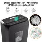 Paper Shredder Cross Cut Commerical Item Details Cut Type Cross Cut Brand Bonsaii Capacity 13 Liters Recommended Uses For Product Document,office Color Black 【Crosscut Paper & Credit Card Shredder】 Bonsaii home paper shredder, shreds up to 6 sheets of paper at one time (Max 36 Sheets in one minutes) into tiny pieces measuring 13/64 x 45/64 inches (5x18mm), also destroys junk mail/document/staples/credit cards as well. 【Compact Sizes】 The home shredder comes with portable handle design and small size of 14.1 x 11.8 x 7 inches, you can place it in the coner or under the desk. Perfect for home or small office. 【Easy Operation & Safe Protection】 Auto start/stop and manual-reverse function protect the paper shredder from the frustration of paper jams. Overheat protection function tackle the trouble in using the shredder and prolong its lifetime. The document shredder will stop working once you lift the head, keeping you safe. 【3.4 Gal Transparent Wastebasket】 The crosscut shredder with 3.4 gallon wastebasket can hold 180 sheets of A4 paper for less frequent and easy emptying. Large transparent window makes it easy to see when it is full. Terms Of Sale Your order will be dispatched within 2-3 business day after cleared payment. We believe in our products as well as we believe in our customers! Therefore we offer 60 days returns period. Returns are gladly accepted as long as it is in the original condition, including all manuals and accessories. Shipping Information We ship FAST, How Fast? 90% of our shipments are delivered just in about 48 hours after they are shipped. Our stock all ships from our US-Based Warehouses. We work with all major shipping companies (UPS, USPS, FedEx etc.) and provide tracking number to most of our products. Please ensure that Your address is correct and verified before checkout.
