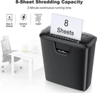 Paper Shredder for Home Use , 8-Sheet Strip Cut Home Office Shredder , CD/Credit Card Shredder Machine with Overheat Protection, 3.4 Gallons Wastebasket π 8-Sheet Shredding Capacity: Empower yourself with the ability to shred up to 8 sheets of paper at a time. This home office shredder goes beyond paper and can handle credit cards, CDs, DVDs, and other vital documents, making it your versatile companion. π‘οΈ Overheat Protection: Experience worry-free shredding with the overheat protection feature. The home office shredder can run continuously for 2 minutes, and if the limit is exceeded, the overheat LED will flash red. Simply allow the shredder to cool for 40 minutes before resuming operations. π Easy to Use: Navigate through your shredding tasks effortlessly. The small paper shredder features a safe start mode, ensuring secure operation, and a manual reverse jam-clearing function. If a paper jam occurs, press the FWD button for a quick and easy solution. π Suitable for Home Office Use: The confetti size of 15/64 inches ensures that your privacy is well-protected. With a 3.4-gallon bin, this shredder meets the daily needs of your family, providing a convenient and efficient solution for maintaining confidentiality.