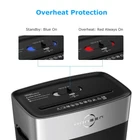 Product Dimension: 12.6 x 7.5 x 16.4 inches. Kindly confirm whether the dimensions of the shredder meet the requirements. (NOT suitable for large or mid-sized office) 10-sheet Cross Cut: The home office paper shredder shreds up to 10 sheets of paper at one time into tiny pieces measuring 13/64 x 45/64 inches (5 x 18mm); P-4 security level keeps your confidential documents safe; The home shredder also shreds credit cards/staples/paper clips/junk mail Easy Operation & Safe Protection: The document shredder with 4 mode control switch (FED, AUTO, OFF, REV); The indicator light shows the state of the shredder; The overheat protection is designed to ensure the longevity of the machine 4 Gal Transparent Bin for Less Emptying: The 4-gallon large basket can hold 210 sheets of A4 paper; The visible basket design makes it easy to see when the shredder is full; The shredder machine will stop when the head of the shredder is lifted or the bin is full Sturdy and Durable: The 4-minute non-stop paper shredder is made of top-notch ABS plastics that the cross-cut shredder non-deformable construction and long-lasting durability; The high-temperature ion nitriding process sharpens the steel knife Professional Service: The shredder will give you reliable using experience with professional customer service