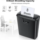 Paper Shredder for Home Use, 8-Sheet StripCut Home Office Shredder, CD/Credit Card Shredder Machine with Overheat Protection, 3.4 Gallons Wastebasket 8-Sheet Shredding Capacity: Home shredder can shred up to 8 sheets of paper at a time, and can shred credit cards/CDs/DVDs/and other important documents to meet your other needs. Overheat Protection: Home office shredder can run continuously for 2 minutes. When the run time is exceeded, the overheat LED will flash red. Allow the shredder to cool for 15 minutes before using again. Easy to Use: Small paper shredder features a safe start mode and manual reverse jam clearing. When the machine jams paper, you can easily solve the paper jam problem by pressing the FWD button. Suitable for Home Office Use: The size of the confetti is 15/64 inches, which can protect your privacy. The 3.4 gallon bin can meet the daily needs of the family. Important Note: Do not spray or keep any aerosol products in or around the shredder. Professional Service: If you have any questions during use, plase tell us through Amazon, we have professional customer service to help you within 24hrs.