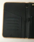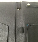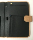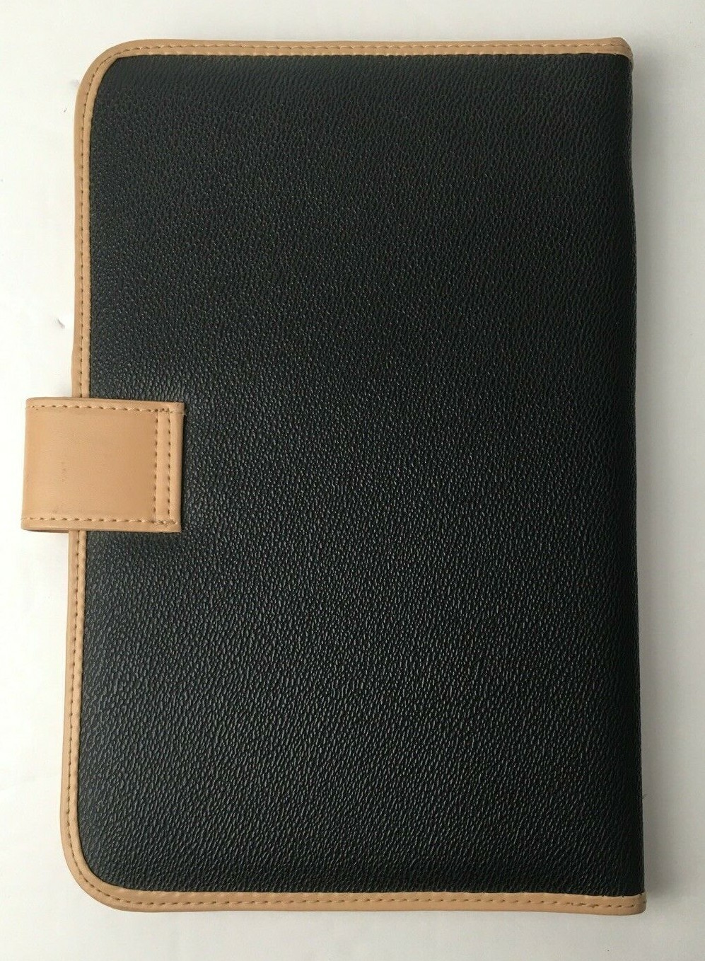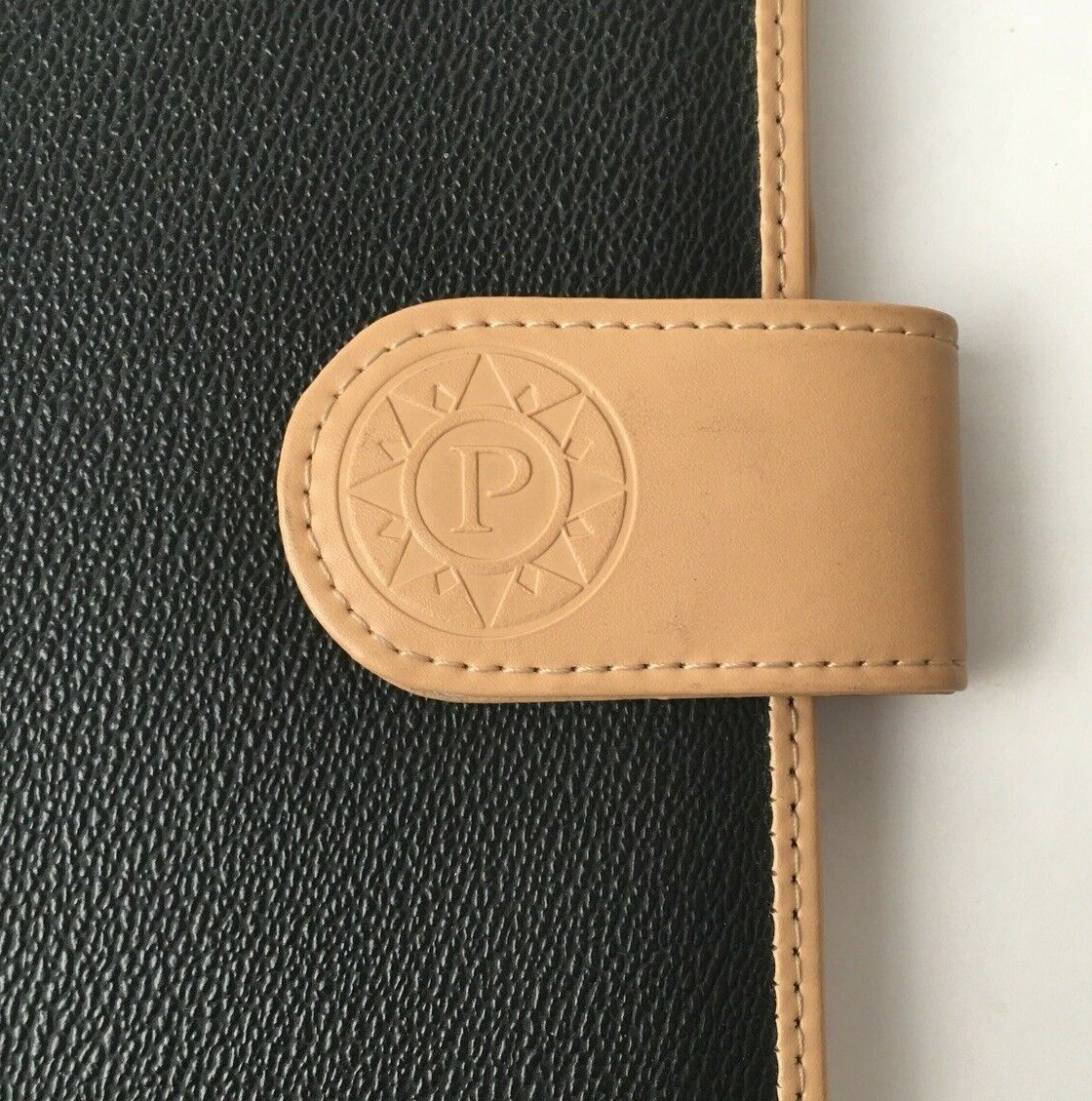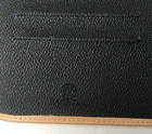 Parazul Travel Organizer - Snap-front closure with embossed Parazul logo - Faux black leather organizer with tan trim - Sleeve with signature blue lining for filing travel documents and notes - Five credit card slots - One pen elastic band - Zippered pocket for securely stowing cash and change - Special hanger for jewelry - Loop for attaching your keys and favorite Parazul charms - Measures, closed, 10" long, 6 1/2" wide, and 1/4" thick - In very good pre-owned condition (some wear on interior tan trim and