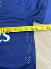 Brand: Nike Team: Paris Saint-Germain (PSG) Style: Authentic home soccer jersey with Zlatan Ibrahimovic name and number 10 on the back, central red and white vertical stripe, short sleeves. Season/Year: 2014-2015 with Champion 2014 Ligue 1 badge on sleeve. Color: Navy blue with darker navy striping and red and white accents. Size on tag: Large Materials: 100% polyester Dri-FIT performance fabric with mesh inner lining and laser-cut ventilation holes at the sides. Country of manufacture: Made in Thailand. Front details: Embroidered Nike Swoosh and PSG crest, Fly Emirates sponsor print, ICI CEST PARIS inner neck detail, authentic Nike 2014 jock tag with serial 000167113, Dri-FIT logo near hem. Back details: Ibrahimovic name set and large 10 with LFP logos, Ooredoo sponsor print, vertical red and white stripe. Additional sleeve detail: QNB sponsor print on one sleeve, Champion 2014 Paris Saint-Germain badge on the other. Inner tag codes: SU131204SYS, style code 479302-620. UPC: 826215900061