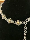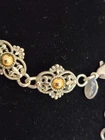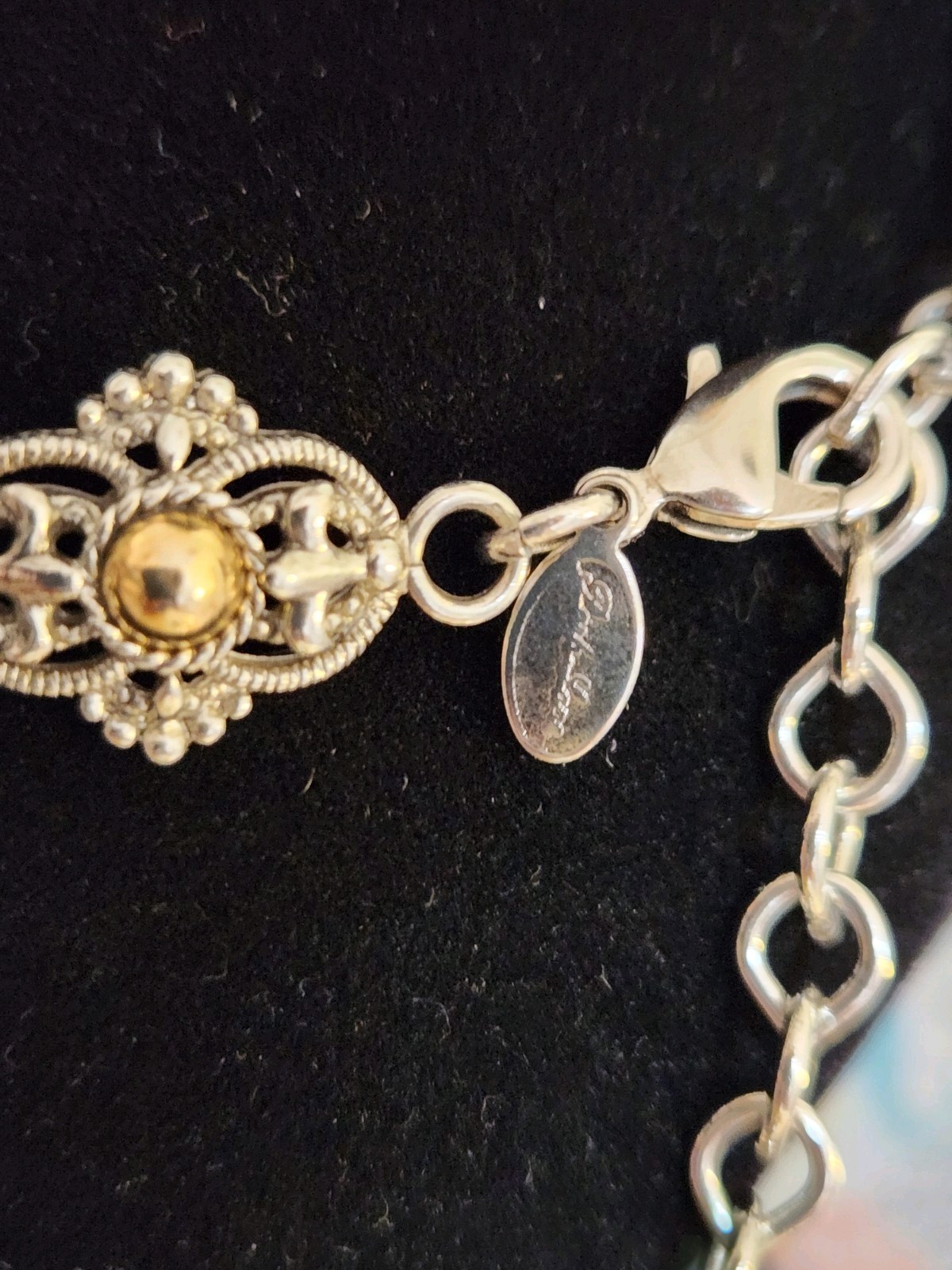 The Park Lane Signed Gold Silver Two Tone Necklace is a stunning piece of fashion jewelry handcrafted in the United States. This choker-style necklace features an adjustable closure and a gorgeous combination of gold and silver tones, making it perfect for all occasions. With its art deco-inspired design and retro theme, this necklace adds a touch of elegance and sophistication to any outfit. Signed by the renowned brand Park Lane, this masterpiece showcases quality craftsmanship and attention to detail.