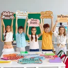 Features: In addition to being a nice asset for teachers, these posters can also be applied by students for independent study. Display them in a study area at home or in a dorm room to immerse yourself in the Spanish language even outside of the classroom. Overall, our boho Spanish classroom posters are a versatile and valuable addition to any classroom or learning space. They are nice for teachers looking to enhance their classroom decor and teaching materials, as well as for students who want to improve their Spanish language skills. Order your set today and take your Spanish language learning to the next level! Specifications: Material: paper Color: multicolors Size: approx. 11.22 x 7.28 inch /28.5 x 18.5 cm Package includes: 20 x Spanish bulletin board posters 10 x adhesive dots Notices: Manual measurement, please allow slight errors on size. The color may exist a slight difference due to different screen displays. Spanish Phrases Poster Set: Introducing our 20 pieces boho theme Spanish posters set, package come with 10 sheet adhesive dots for easy application, nice for adding a touch of diversity and culture to any classroom or learning space. Each poster features a different Spanish phrase that is commonly applied in everyday conversation, making them nice for teaching students essential vocabulary and phrases Quality Material: These Spanish classroom posters are made of quality cardstock with a surface lamination film, ensuring durability and longevity and marks on them written by water-based dry erase markers could be erased. Measures about 11.22 x 7.28 inch /28.5 x 18.5 cm, these Spanish bulletin board posters are large enough to be easily visible from any part of the classroom, making them an excellent tool for visual learners Thoughtful Design: Teachers, both in primary and preschool settings, will find these posters to be a valuable resource for enhancing their Spanish language lessons. The phrases featured on the posters cover a wide range of topics, from greetings to basic conversations. With these posters, teachers can create interactive activities and games to help students practice their Spanish language skills in a fun and engaging way Spanish Bulletin Board Decoration: These Spanish classroom posters are also a nice tool for creating a Spanish bulletin board, allowing you to showcase student work or display important information in a visually appealing way. Teachers can use these posters as study materials to reinforce lesson concepts, while students can use them as reference guides for practicing their Spanish skills Wide Application: Whether you are a teacher looking to enhance your classroom environment or a parent wanting to create a bilingual learning environment at home, these Spanish posters are a fantastic addition to any space. You can use them to stick to the wall, bulletin board or other places where students can easily recognized, help them learn