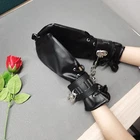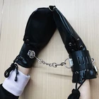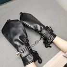 Feature: Condition:100% Brand New One Size for all Handcuff size: 24.5cm (L)* 5.5cm(W) Mitten Size: 27cm (L)* 13.5cm(W) Color: Black Material: Faux Leather Net Weight: 225g Package Included: one pair of cuffs as the picture with locks Description: This hand restraint features a pair of full hand glove and two wrist cuffs. The mittens are very soft and fully lined, with side lacing for a better fit. The wrist cuffs have one padlock with 2 keys for each lockable strap. Each mitten and wrist cuffs has D rings for rope or chains attachments. Free size, fits all hand sizes and max wrist size about 22cm.