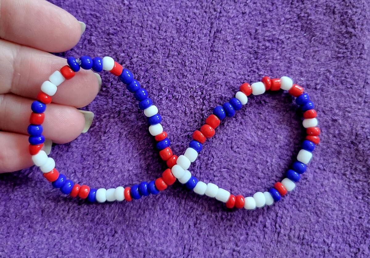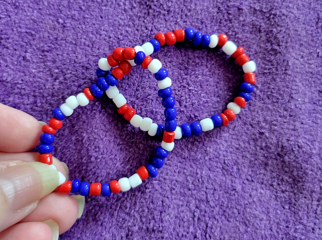 I make ALL of my Anklets in Sizes 9 1/2, 10 1/2, 11 1/2 & 12 1/2. If you need Another Size, just let me Know in the Sales Notes. ~~ 0028900~~ ~Please scroll DOWN to view the entire Listing~ (To use the Magnifying tool to read Tags/Labels and see Closeup views, please choose a picture with your cursor, and then Hold your cursor over the picture. A small magnifying box should appear and will Allow you to see Closeup.) ** USA Red, White & Blue No Pattern Glass Bead Beaded Anklet - Patriot I Love America - Unique 12 1/2" ** This Anklet is Really Nice, in Excellent Condition, Strung on Strong Elastic for Easy On and Off and a Great addition to Your Wardrobe. Dimensions: 12 1/2" Long Perfect for Yourself or as a Gift! Note to Buyer: I'm sorry postage is so expensive, but I choose to ship your item in a box, so it will arrive undamaged. Also, I Can Create ANY Color Combination of Beads for my Anklets. Just let me know if You Would like a Special Order. No Extra Cost. ~~I'm Great to deal with. Check out my Feedback and my Other Auctions!~~ A+ seller! Super fast shipping, lovely anklet, thank you! I am a repeat customer!!! ~aileen257 Love these ankle bracelets. Shipped fast! ~ikosokar Nice item. Fast delivery. Great communication! ~cinmor99 Item just as described, super fast shipping. Great Ebayer. A++++ ~jennifer315 Please leave Positive & Glowing Feedback and I will be happy to do the same! ~~~~~~~~~~~SMOKE FREE HOME!!~~~~~~~~~~~ Thank you for reading the ENTIRE listing before placing a bid. ~~ Payment MUST be received within 6 days ~~ POLICIES: PLEASE READ BEFORE YOU BID ~Please Ask all Questions BEFORE Bidding - Returns on a Case by Case basis only~ Please read the entire listing BEFORE bidding. **By placing a BID on this item, you are AGREEING to Make Payment and abide by ALL terms, directions & descriptions in this listing.** The Pictures Show the Type of Item you will Receive. The Bead Colors will be the same, but the Bead patterns will be slightly different on the Item you Will receive. Thank Your for Checking out This Listing.