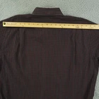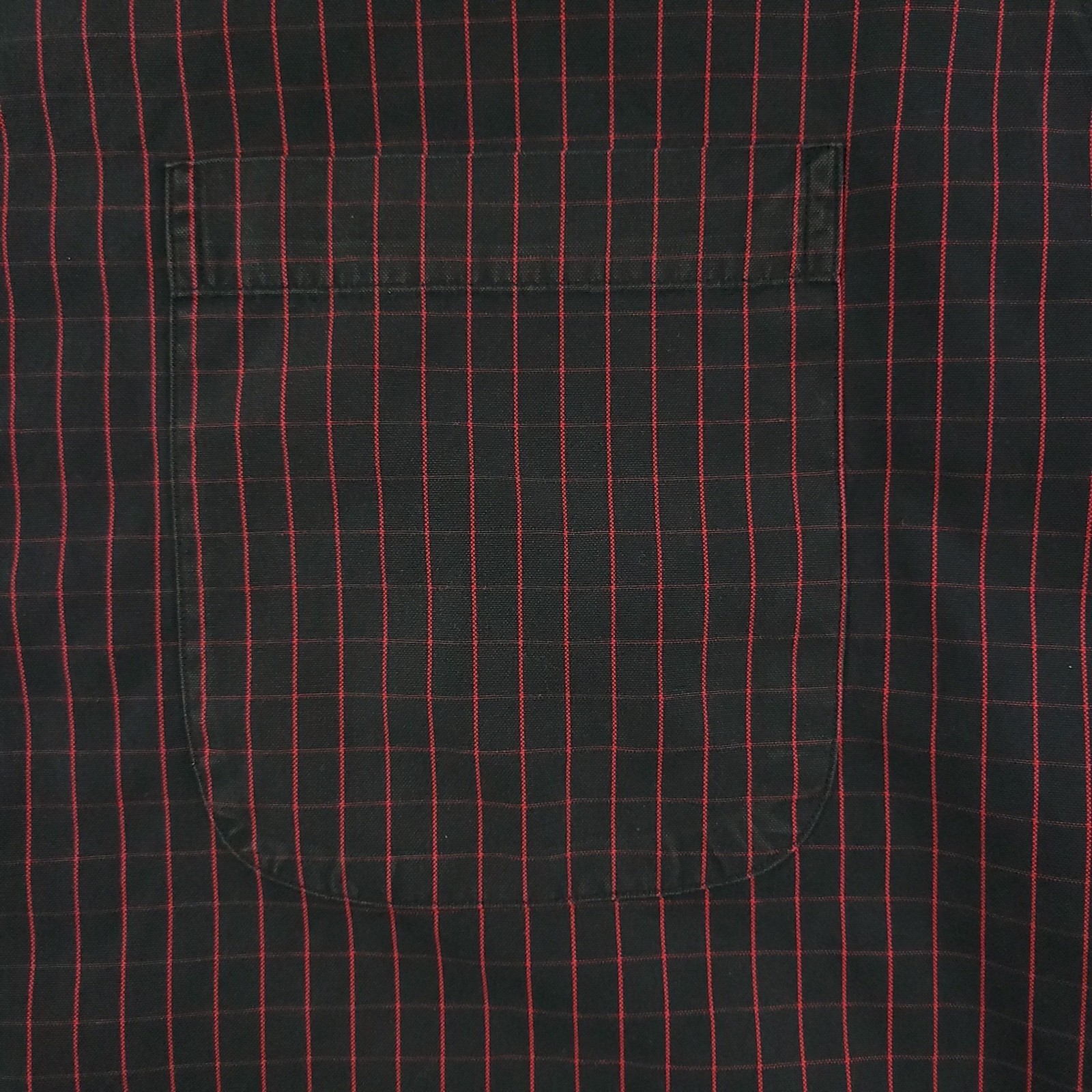 Brand: Paul Fredrick Style: Mens long sleeve button-up dress shirt with button-down collar and single chest pocket. Color: Black base with thin red vertical and horizontal pinstripes creating a subtle grid pattern. Fit: Trim fit. Material: 100% cotton pinpoint (finest two ply cotton pinpoint, per tag). Size on tag: 17½-33 (neck/sleeve). Country of manufacture: Made in China. Details: Full button front closure, button cuffs, curved shirttail hem, classic business/casual styling. Washed and dried with Fragrance Free Detergent & Dryer Sheets. Measurements are included in the photos, compare measurements with your item to ensure proper fit. (Measurements are done with the item lying flat). I ship next business day and all items include tracking. Items are added daily to my store Visit My Store Buy More & Save! Combined shipping for US customers - $1.99 for each additional item (Add items to shopping cart and discounts will automatically calculate during checkout)