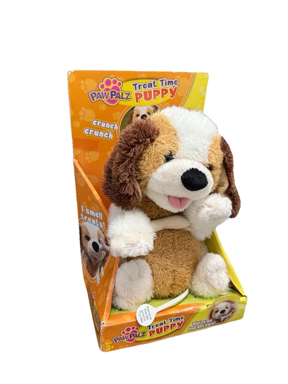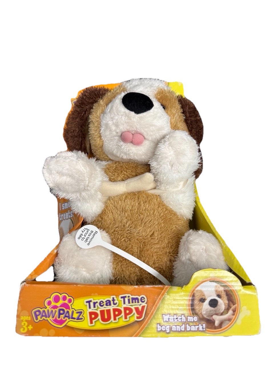 This PawPalz Treat Time Puppy is an adorable interactive plush toy that barks, begs, and moves when activated. Perfect for kids who love animal-themed toys, this cute pup reacts with playful motions and sounds, making it feel like a real little pet. The plush is soft, expressive, and comes in its original display packaging. Great as a gift, collectible, or interactive companion for playtime. Battery-operated with easy access for replacement.