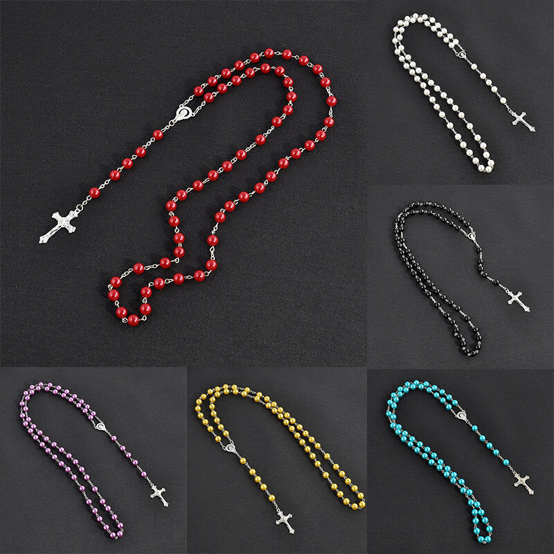 Unisex Necklace Imitation Pearl Cross Necklace Jewelry Rosary Necklace Popular Description: 100% Brand New and high quality. Imitation pearl cross necklace,imitation pearl and alloy material,European and American style,unisex style.Many colors are available.The style is unique and individual. Features: Material:Imitation pearl,alloy Color:red,yellow,purple,black,white,blue Size:35*2cm (1 inch = 25.4mm or 1mm = 0.0393 inch) Package Includes: 1PC Imitation Pearl Cross Necklace Notice: 1. Please allow 2-3% error due to manual measurement. Please make sure you do not mind before you bid. 2. The colors may have different as the difference display,please understand.