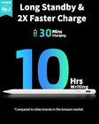 Compatible with iPad (6th, 7th, 8th, 9th and 10th generation), iPad Air (3rd, 4th, and 5th generation), iPad Pro 11-inches (1st, 2nd, 3rd and 4th generation), iPad Pro12.9-inch (3rd, 4th, 5th and 6th generation), iPad Mini (5th and 6th generation) 【0.1 mm Pixel Precise Without Delay】: The upgraded smart chip gives the pen a pixel-level accuracy of up to 0.1 mm, high sensitivity, no breakpoints and no delay. You can just enjoy writing small words and drawing fine lines with ease, just like a real pencil! NOTE: The iPad stylus does not have a pressure sensitive design 【2X Faster Charge】: Pencil A8 can be fully charged in just 30 minutes with USB-C and run for up to 10 hours. Charge 1 min = work 50 mins, charge 4 mins = work 2 hours. The LED indicator shows different colors according to the power, reminding you to charge in time. Automatic shutdown after 5 minutes of inactivity for efficient energy saving 【More Durable Tips】: Made of high quality polymer material, the 's tips pass the 20 km tip durability test -- 2X more durable than the original iPencil's tips. Its internal structure remains always intact after 3000 times impacts. In addition, each A8 pen comes with two extra replaceable tips , much cost-saving for users with high frequency pencil tips 【Tilt-sensitive and Palm Rejection】: Different angles create different lines and shadows on screen. Tilt for the shadow in [pencil brush] or tilt for thicker lines in [Marker brush]. Our ipad stylu supports with Palm Rejection. No longer glove, you can rest your palm or fingers on the screen during sketching, drawing and writing 【Quick Connect and Double Magnets】: No need to connect to Bluetooth or APPs. Double-tap the top of the pen (Invisible touch switch) to turn it ON/OFF for a quick connect. With two built-in magnets, the iPad Pen is always ready to firmly attach to your iPad at any time, no more rolling and lost. NOTE: Wireless Charging is NOT Supported. NO Magnet Attach for iPad Pro M4, iPad Air M2, iPad Air 3rd Gen, iPad 6th/7th/8th/9th/10th Gen, iPad mini 5th 【Make Sure Your iPad Model is Compatible】: Pencil A8 is ONLY compatible with the iPad 2018-2024 series models: NEW 2024 iPad Air 11-inch & 13-inch (M2), iPad Pro 11-inch & 13-inch (M4), iPad 10/9/8/7/6 Gen, iPad Air 3/4/5 Gen, iPad Pro 11 inch 1/2/3/4 Gen, iPad Pro 12.9 inch 3/4/5/6 Gen, iPad Mini 5/6 Gen. NOTE: The Pencil A8 is NOT compatible with iPad models before 2018, iPhone, Android and Microsoft devices. Please check your product model before placing an order