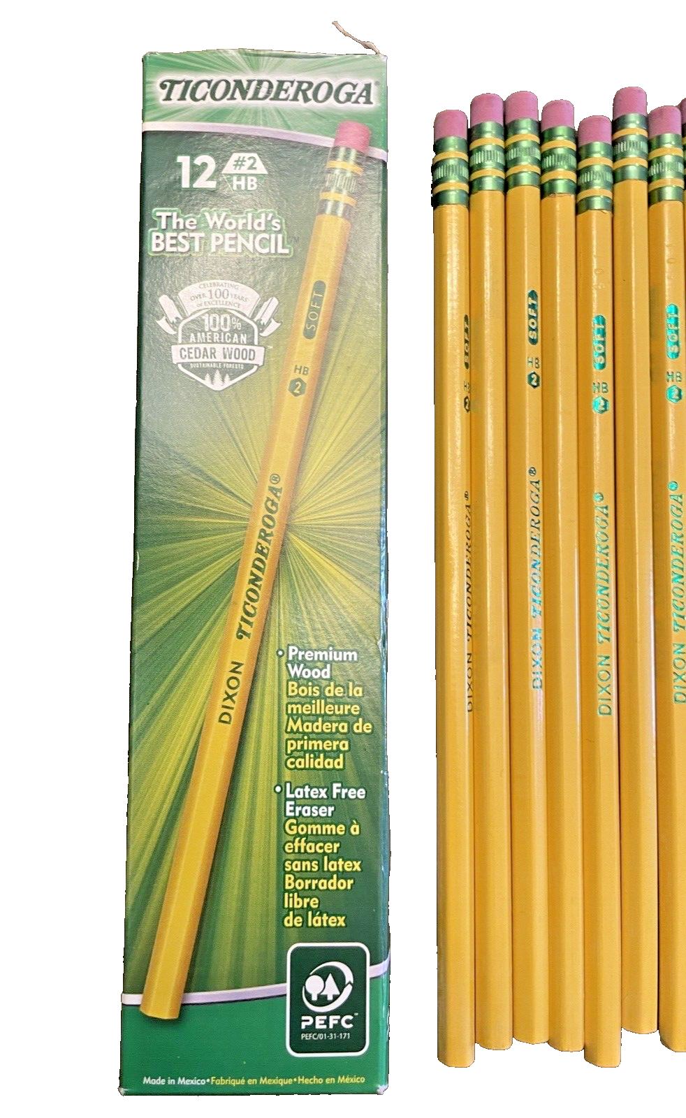 This listing is for a box of Dixon Ticonderoga Pencils 13882 No. 2 Soft 12 Count Dated 2015 Unsharpened - please note that the top of box flap is missing.