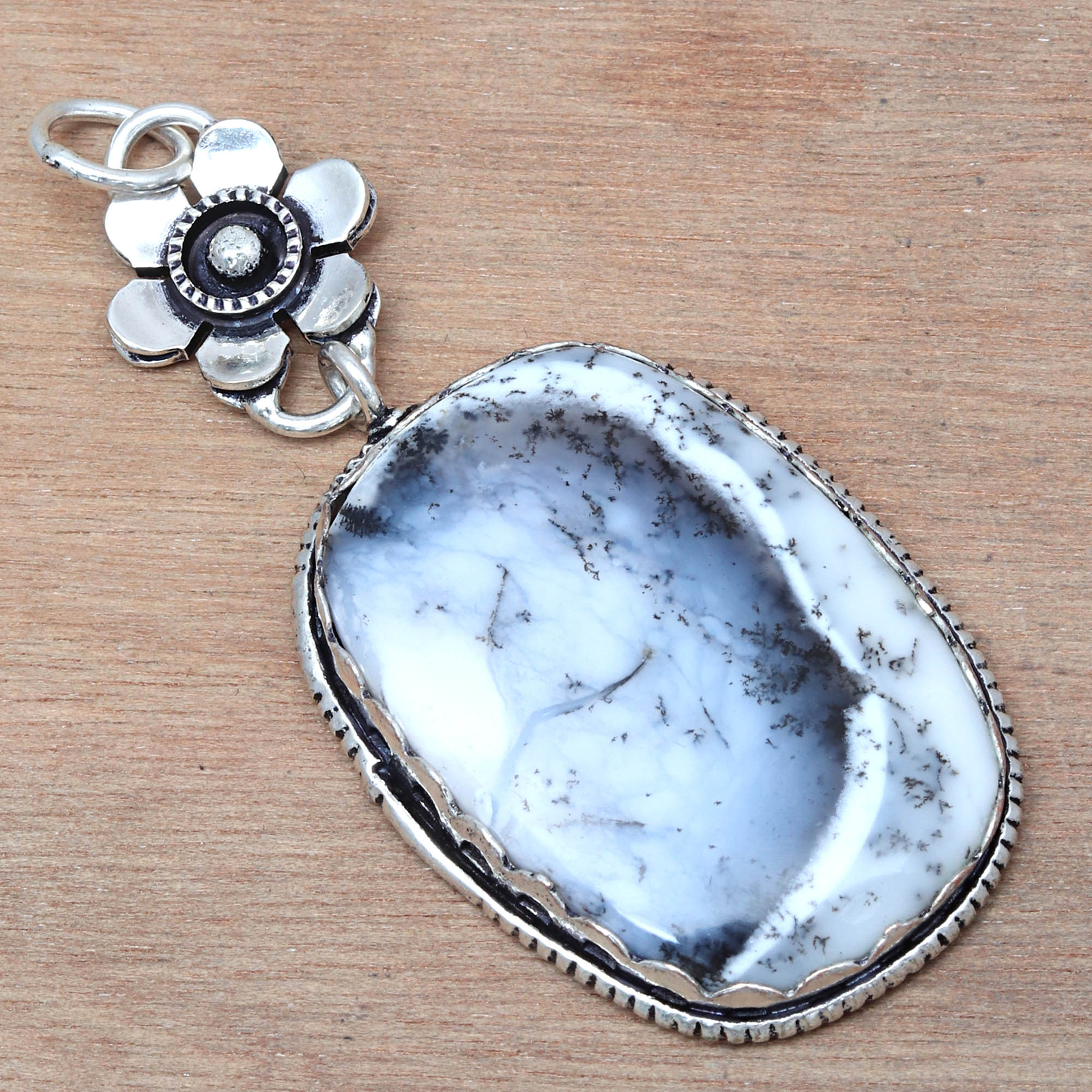 Pendant Dendritic Opal Gemstone Handmade Gift For Her Silver Jewelry 2.5"