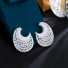 Half Round Moon Cubic Zirconia Drop Earring Luxury Women Wedding Banquet Jewelry Specifications: Condition: New Material: Cubic Zirconia Color : White Size: 4 cm Metal Color: Silver Plated Features: 1. CZ Stone Material - Top Level Cubic Zirconia. Excellent Cut Simulated Diamond. Enjoy the dazzling sparkle from cubic zirconia Hoop earrings. 2. These Fashion Large Hoop Earrings are Suitable for Almost all of Sensitive Ears. These are the top Cubic Zircon Round Earrings for Daily Wear. 3. Suitable for Various Occasions: Ideal for Wedding, Prom, Pageant, Parties, Homecoming, Black Tie Formal Affairs, Holidays , Birthday , Christmas , Valentine's Day , Anniversary and Special Occasions. 4. A Perfect Jewelry Gift for Women , Girls , Mother , Wife , Lover , Fiancee , Friends , Bride , Bridesmaid . Package Includes: 1 Pair Earrings Payment Delivery details Terms of sales & Feedbacks About us & Contact us Our commitment Payment 1. We only ship item to your Ebay verified address . Please Make sure all address are the same 2.Please leave note in ebay when making the payment if you have any special request (colors/size). Delivery details We only send items to the registered eBay address.Items will be shipped within 2 business days from the date payment is received (not include public holiday and weekend) . As per eBay regulations, import duties, taxes, and customs charges are the buyer's responsibility. Please check with your country's customs office to determine what these additional costs may be prior to bidding or buying. Terms of sales & Feedbacks After-Sale Please contact us to request a return/replace/refund authorization .It will be best if you use ebay message to contact me. 1, Return and replacement request is available only the requests within 30 days after parcel received. 2, Returning the item as the same condition as received. Situation and solution Defectives ---Please contact us and provide a photo of the defective part. After situation confirmed,we will offer you refund/return/replacement according to the situation Not as Described ---Please contact us and provide a photo of the wrong part. After situation confirmed,we will offer you refund/return/replacement according to the situation Not Received ---Please undersatnding shipping on the way was out of our control ,because of the busy shipping season,holidays,bad weather or force majeure etc. It may be delay for days. But if it took too much time and not deliveried, Please message me, I will offer you solution for it. Feedbacks 1. If you are satisfied with our service, please leave us a + Good feedback and rate the details of the transaction (DSR) with a. . When you rate the shipping time part please take international transit into consideration.] Your recognition will make us more confident to develop business and serve you better. 2. Please contact us first if you have any problem with the items,we will solve it in time ! 3. Please do not leave Neutral or Negative Feedback before you contact us, Thanks For Your Business ! About us & Contact us Working time: Chinese time(Eastern eight zones):Monday to Friday ,9:00 am to 6:00 pm. We do not work on chinese legal holiday. Message reply: We will reply all messages within 24 hours of business time. Please contact us via ebay message, it was the best way for both you and us to solve problems. Any questions or anything you need, please feel free to contact us. Our commitment 1.Wholesale price will be offered to you if you need in bulk ! 2.About Size
