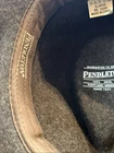 The Pendleton Fedora Style Wool Hat in Brown, size X-Large, is a classic and stylish accessory for men. Made in the United States, this hat features a solid pattern, leather strap, and is crafted from wool fabric. With a Western and cowboy theme, this hat is perfect for casual occasions and adding a touch of nature-inspired flair to any outfit. The XL size ensures a comfortable and stylish fit for fans of the Indiana Jones character and those who appreciate high-quality designer hats.