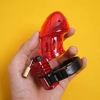 Private Shipping Penis Male Chastity Cage Cock Ring Plastic Adjustable Lockable Device Adults Men Restraints Sex Aid Production Description Material: Plastic Color: Red Size: Total cage length: about 9cm/3.55in Ring diameter: 3.8cm/1.5in Cage diameter( the widest part): 4.6cm/1.8in Net Wei ght: 85g More details, please refer to product picture. Package Include: 1* chastity cage