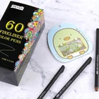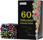 60 Vibrant Colors - Fineliner color pen set contains 60 unique brilliant colors, 0.4 mm fine point colored pens. Assorted color fine tip pens for drawing lines & details, schedules, architecture, sketching, writing, signing, journals, calendars, agendas, notebooks, planners, adult coloring books, art supplies, school supplies, and office supplies Fine Point Pens - Ultra-thin 0.4 mm fine point markers colored pens with a superfine, metal-clad tip for precision & durability. Great for fine, detailed work with rulers & stencils, artists' fine-ink drawings, and coloring small intricate patterns Safe & Non-Toxic Color Ink - Colored art writing drawing porous point pens. Water-based ink, dry safe, minimal bleed thru (except very thin paper), acid-free, non-toxic ink, these fiber-tipped pens create fine lines and intense water-based colors. PP barrel and cap long service life. The fine line pens colored drawing pens conform to ASTM D-4236 & EN71 Bonus Cute Stickers - 50 pcs stickers are included that give you unlimited possibilities- never stop creating. Keeping you well organized and serving as a present for family, friends, neighbors, and co-workers. Colorful pen is great for school, travel, home, office, work, business, colleague, church, club, and organization activities
