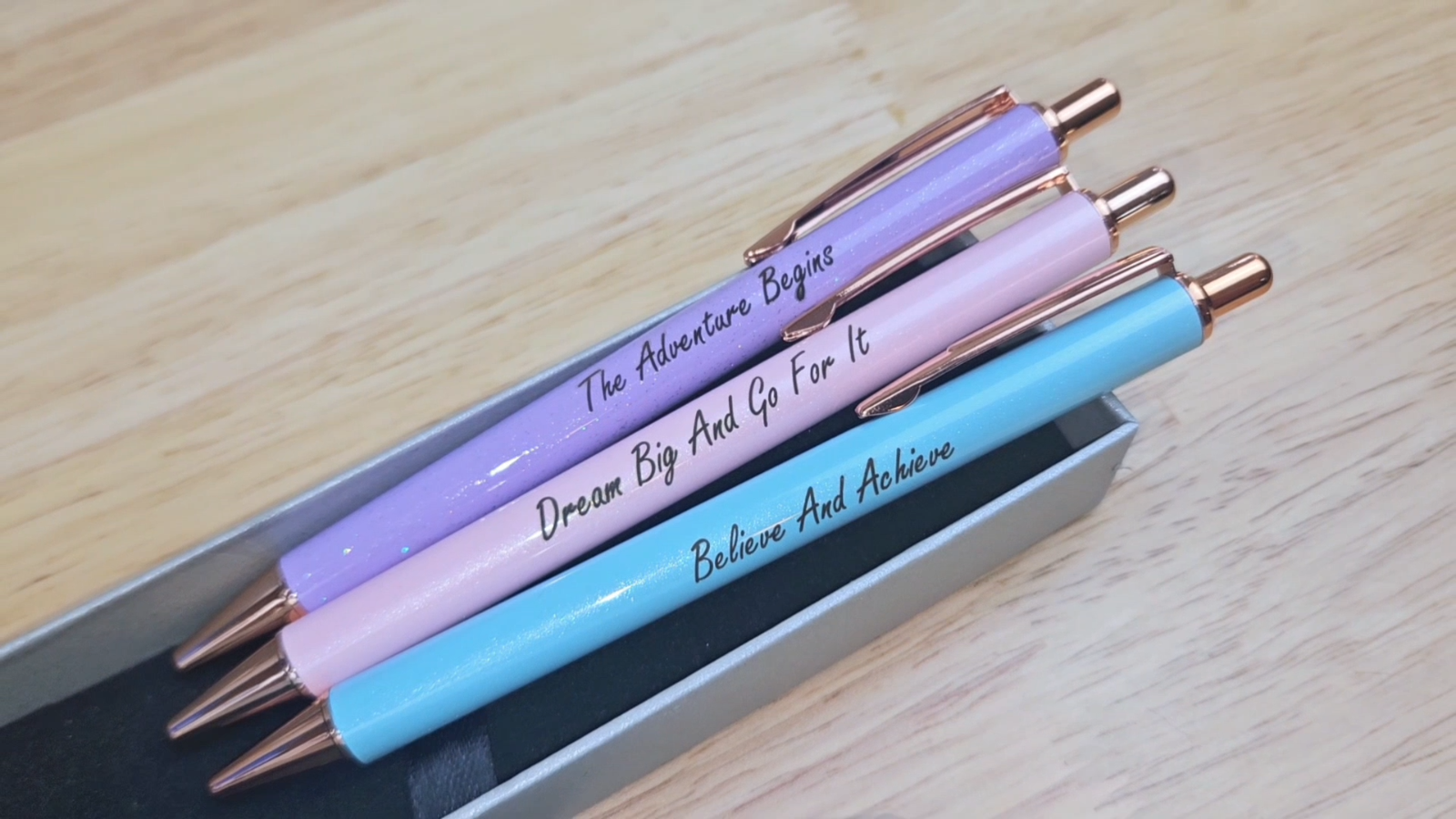 Elevate your writing experience with this exquisite pastel pen set, a delightful fusion of elegance and functionality. Crafted with meticulous attention to detail, these ballpoint pens boast a luxurious design that exudes sophistication. The soft, muted hues of the pastel colors create a soothing and visually appealing aesthetic, making them a joy to use and admire. Whether you're jotting down notes, composing heartfelt messages, or simply indulging in the pleasure of writing, these pens offer a smooth and seamless writing experience. Ideal for personal use or as thoughtful gifts, this pen set is a perfect choice for those who appreciate the finer things in life. Treat yourself or someone special to a touch of luxury and elevate your writing moments with these enchanting pastel pens. Luxury Gift Set: Elevate your writing experience with this exquisite pastel pen set, perfect as an appreciation or thank you gift for women. Elegant Design: Featuring a beautiful pastel color palette and sleek, fancy ballpoint pen bodies, these pens exude sophistication and style. Inspirational Touch: Inspire and motivate with these pens, adorned with uplifting quotes and messages to brighten your day. Versatile Usage: Ideal for journaling, note-taking, or simply adding a touch of elegance to your daily writing tasks. Premium Quality: Crafted with high-quality materials, these pens provide a smooth, consistent writing experience.