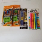 Lot of school or office supplies. 4 Sharpie markers, 2 Pilot fine, blue ink pens and 2 packs of 10 mechanical pencils #2. All new in packages.