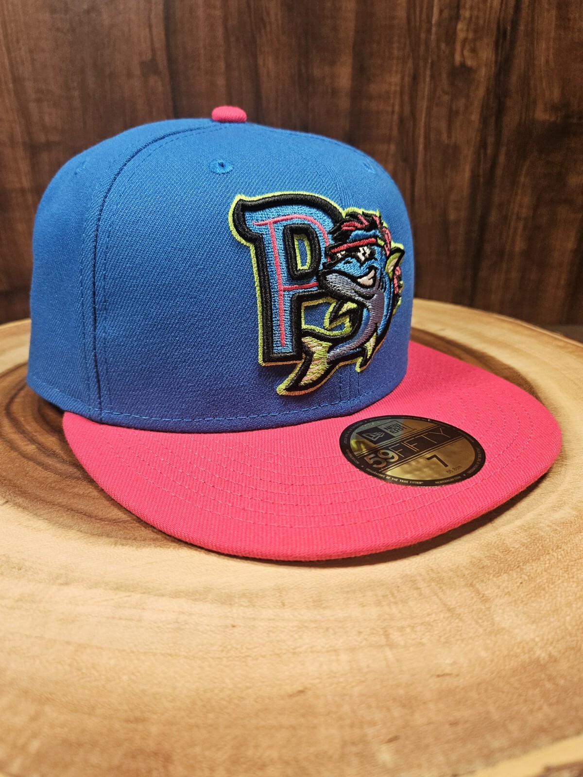 The Pensecola Blue Wahoos New Era 59Fifty Fitted Hat Cap Size 7 is a baseball cap made for men. It is a Minor League Baseball cap with a size of 7.