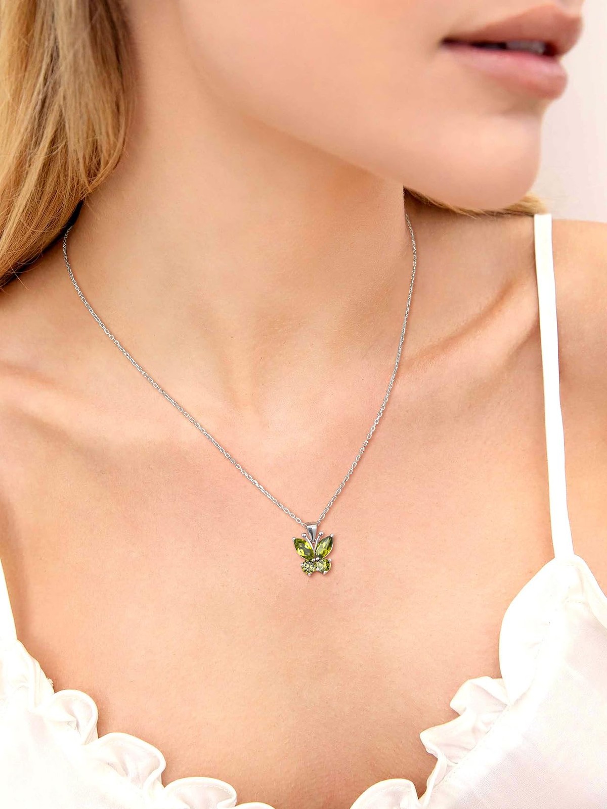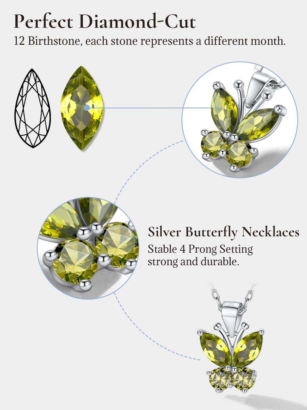 Gorgeous butterfly jewelry for women Metal: 925 Sterling Silver (Real) Material : AAA+ Cubic Zirconia 12 Color Choice: Blue/Pink/Red/Purple/Deep Purple/White/Yellow/Olive Green/Ruby/Sapphire Blue/Light Blue Butterfly. Women 925 Sterling Silver Butterflies Birthstone Pendant Necklace/Earrings/Rings Wedding Gift Jewelry style you can choose: ear cuffs for non pierced ears, surgical stud earrings, stackable rings, pendant necklace. Stamp: S925 The butterfly jewelry design features the love of flying with each other, and staying with your partner for a lifetime. Wearing a butterfly jewelry set expresses the yearning for freedom and also entrusts the hope for the future. Perfect Gift: gift for your LOVER, family or friends on days like birthday, anniversary, Party, Valentine's day, Thanksgiving Day, graduation. Hypoallergenic, lead free, nickel free and hypoallergenic, the stone is lasting and sparkling. Butterfly Necklace is made of Real 925 Sterling Silver and cubic zirconia stone, it's strong and durable,doesn't turn your neck green at all.If you want to have a necklace suitable for matching,this necklace is your ideal choice. Design concept : cute butterfly flying, birthstone made butterfly body, gorgeous shiny and lovely vivid look, butterfly is a symbol of joy and happiness, send this necklace to loved ones on her birthstone, it will bring her luck and she will feel your care from heart. Necklace size : pendant 0.63 Inch height and 0.48 inch wide ; dainty rolo chain length 16" with 2 inches extender ; whole necklace weight 3.9 grams. Simple necklace is simple in design and has its own unique charm.It is suitable for birthdays, vacations, beach parties, festivals and other occasions.It is the dainty accessory that adds atmosphere to daily life. Necklace comes with a gift box and a black velvet bag.