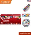 Permanent Markers Ultimate Collection, Fine and Ultra Fine Points, Assorted Colors, 115 Count Make your own masterpiece with the vividly bold Ultimate Collector’s Edition Proudly permanent ink marks on paper, plastic, metal, and most other surfaces Remarkably resilient formula dries quickly and resists fading and water; AP certified Endless marking options: Fine tip for impressively bold marks, ultra-fine tip for ridiculous detail, chisel tip for broad and fine lines plus versatile twin tip markers The ultimate collection: 40 fine, 42 ultra fine, 8 chisel and 12 twin tip coloring markers in unforgettable original colors, 5 luminous neon markers, and 8 shimmering metallic markers Dare to unleash the ultimate in vividly creative marking with this collector’s edition of 115 Permanent Markers. Bold and permanent to the core, your marker set includes 40 fine, 42 ultra fine, 8 chisel and 12 twin tip markers in vivid original colors, 5 luminous neon markers, and 8 shimmering metallic markers. Made to mark practically everywhere, original markers inspire you to transform ordinary surfaces into inspired statements. Meanwhile, neon markers create an electrifying impact, glowing fluorescent under black light. And, metallic markers put pale imitations to shame, laying down a pure metallic sheen that intensely stands out on dark surfaces. Loaded with a versatile assortment of tip types, you can pivot between jaw-dropping details, bold coverage, and beyond for courageously limitless self-expression.