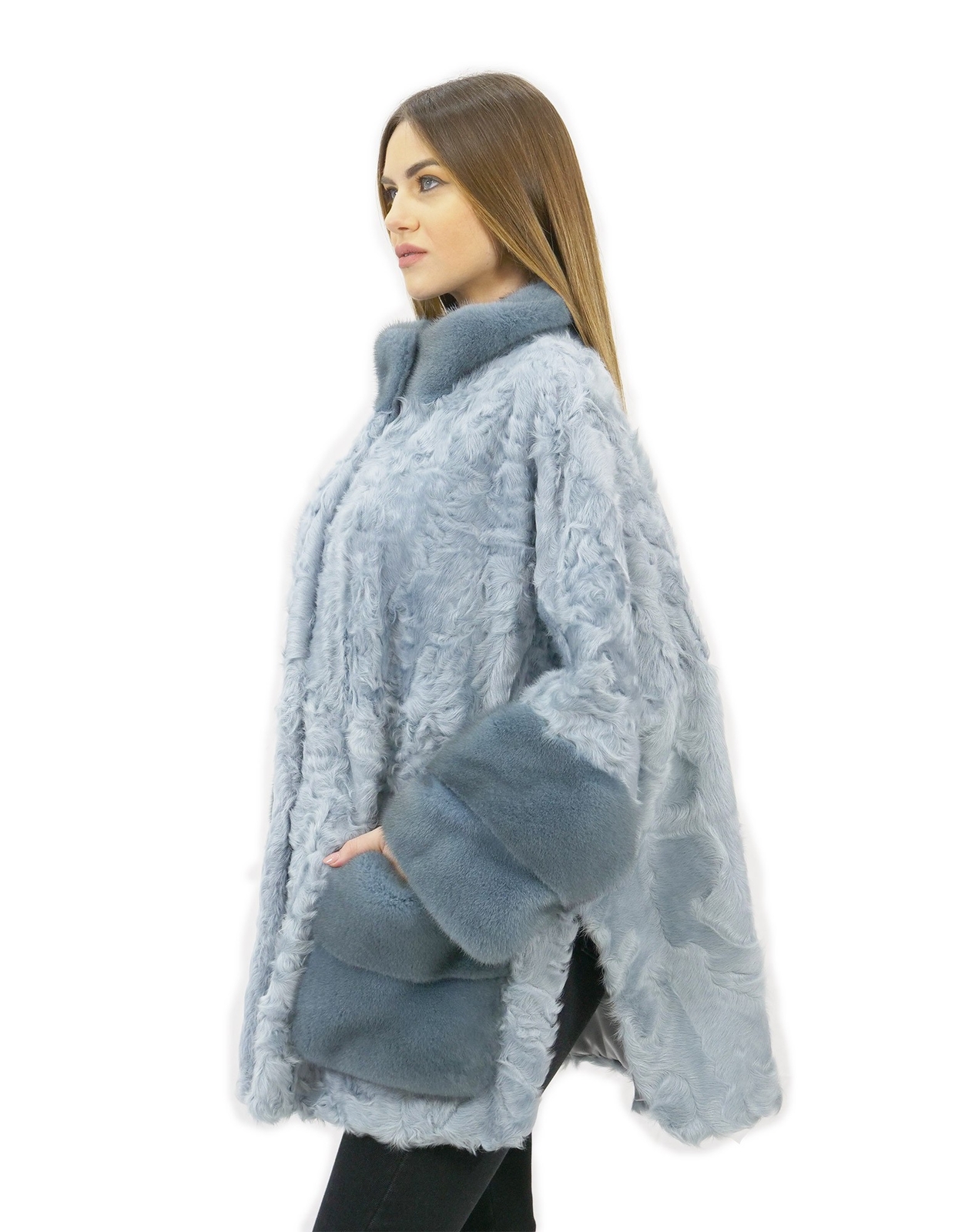 Persian cape and aquamarine mink size 50 with side slits wing model INTERNATIONAL SHIPPING Shipping all over the world MADE IN ITALY PAYMENTS ACCEPTED We accept payments via PayPal, Credit Card, European bank transfer DESCRIPTION Persian fur cape with horizontal mink collar and arms. Our mink furs are productions made in our laboratories, therefore a unique and exclusive mink jacket. The possibility of producing our furs of the highest quality allows us to make proposals at different prices with various opportunities at low prices always available. Furthermore, our laboratories and our collaborations guarantee a mink fur of undisputed quality, 100% made in Italy. The quality of female mink fur used for this is a mink fur jacket with skins signed kopenhagen fur. The Persian and mink fur cape is made of full Persian skin with collar, pockets and arms in mink fur in a splendid light blue color called "aquamarine", hook closure, external fur mug pockets, a beautiful cape with sleeve. MEASURES Exact color - Size - 50 Garment - Capes / Shoulder Covers Height cm (H) - 74cm 29.2 inches Pelvis cm (B) - Split Breast Chest cm (C) - 168 cm 66.2 inches Shoulder width cm (D) - 48cm 18.8 inches Outer Sleeve Length cm (E) - 60cm 23.6 inches Inner Sleeve Length cm (F) - 20cm 7.6 inch Waist cm (G) - Side slits Neck Height cm (H) - High collar Bottom Width cm (I) - Split Garment Size - 50 Color - Blue Item number - PLV933 Padding - Heavenly CODE ARTICLE 00267045 Prestalia e-commerce solutions.