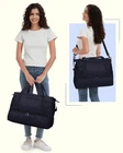 Personal Item Bag 18x14x8 Travel Duffel Bag with Shoe Compartment & Wet Pocke Underseat Carry on Weekender Overnight Bag with Toiletry Bag Gym Bag for Women Men 【Save Your Carry On Charges】The personal item bag measures 17.7x13.4x7.8 inches, fitting within the 18x14x8-inch personal item size limits of Airlines, you can put it under your seat or the overhead compartment without paying carry-on luggage fees 【Wet Pocket and Shoe Compartment】This travel duffel bag has a wet and dry separation design . There is a waterproof PVC lined pocket to separate dry and wet items, making it ideal for holding towel and toiletries. The personal item bag has a double-layer design. The shoe compartment on the lower layer with breathable vents, accommodating your shoes or dirty clothes for easy separation from clean clothes when traveling 【Travel Friendly】Our personal item bag has 30L capacity, it not only has 2 large compartments, but also 6 pockets to hold your 3-5 days travel essentials, it is a perfect companion for airplane travel. The trolley sleeve on the back fits rolling suitcases of various sizes. Equipped with adjustable and detachable shoulder strap and shoulder pad, it provides you with multiple carrying options 【Extra Toiletry Bag】This travel duffle bag comes with a matching toiletry bag that can hold your essentials like shampoo, toothbrush, makeup and more. It has a zipper closure for easy access. It is lightweight and portable, ideal for travel or daily use 【Multipurpose Duffel Bag】: This duffel bag fits all your essentials and is perfect for travel, weekends, yoga, gym, beach, business trips, and sports. Use it as a carry-on bag, overnight bag, gym bag, weekender bag or hospital bag (Patent Pending)