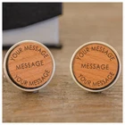Please familiarise yourself with "How to Personalise" further down the listing Engraved Any Message Wooden Round Cufflinks Each cufflink can be engraved with a personalised message of your choice. Please confirm top, middle and bottom. Each cufflink can differ. The limits are as below. Wording is uppercase only as seen. Please ensure you clearly state where the wording is to be appear especially if each one is to differ in message. Cufflink 1 Top - 15 characters Middle - 10 characters Bottom - 15 characters Cufflink 2 Top - 15 characters Middle - 10 characters Bottom - 15 characters High quality round cufflinks with a cherry wood centre. Supplied in a smart cuffink case. Free eBay listing template designed by dewiso.com HOW TO PERSONALISE Step 1: On the listing type your wording into the message box Step 2: Ensure all text is within limit. No use of accents, emojis, special characters or alternative languages. Step 3: Proceed to make payment