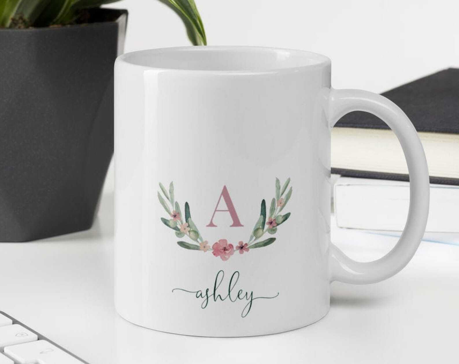 Personalizable Bride Bridesmaid Wedding Newlyweds Engaged Just Married Friend Mug Initial With Flowers Name Cup Engagement Gift Product Details.. This high quality 11oz. ceramic white mug has a premium hard coat that provides crisp and vibrant color reproduction sure to last for years. Perfect for all hot & cold beverages. The highest quality printing possible is used. It will never fade no matter how many times you wash it. Material: 100% Ceramic. Print both sides. Dishwasher and Microwave Safe. High Gloss + Premium White Finish. Printed in the U.S.A. Personalized & Custom. We support personalized and custom mug to add custom, when placing an order, you can add notes to the "order note" in shipping address section. Also you can contact us directly via message. Shipping Info. Ready to ship in 1 to 2 business days, All products are made-to-order and proudly printed in the United States. Shipped by USPS and DHL, You will receive your order in 5-7 days. Replace & Refund. All products are defective during shipping broken, chipped will be replaced free of charge. You are not satisfied with the product, we will refund 100% money to you. If any other issues arise, please do not hesitate to message, we would be more than happy to assist you.
