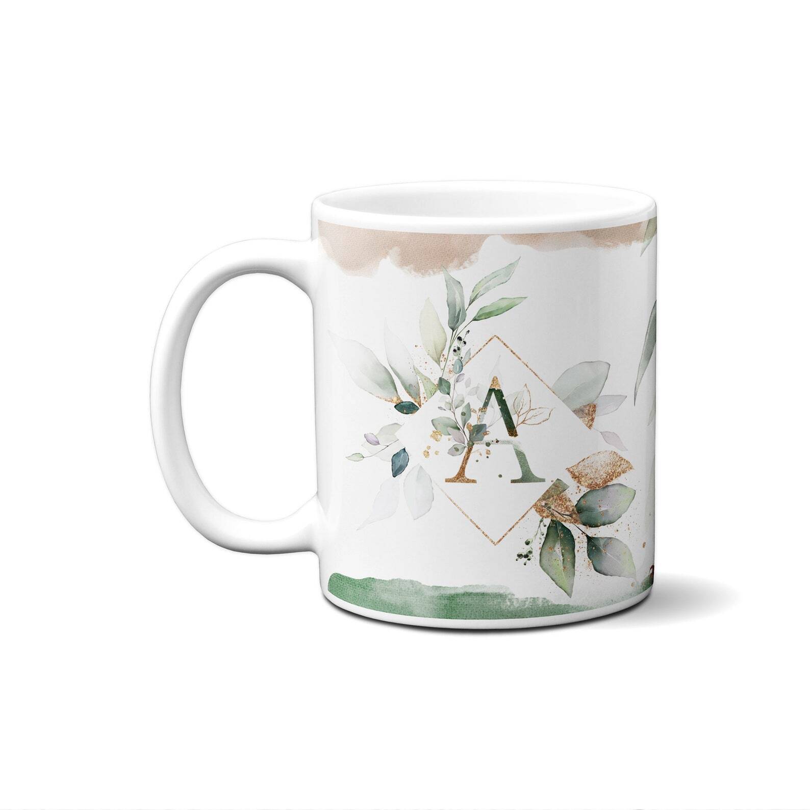 Letter Mug With Floral Initial Alphabet Customize Flowers Monogram & Name Co
