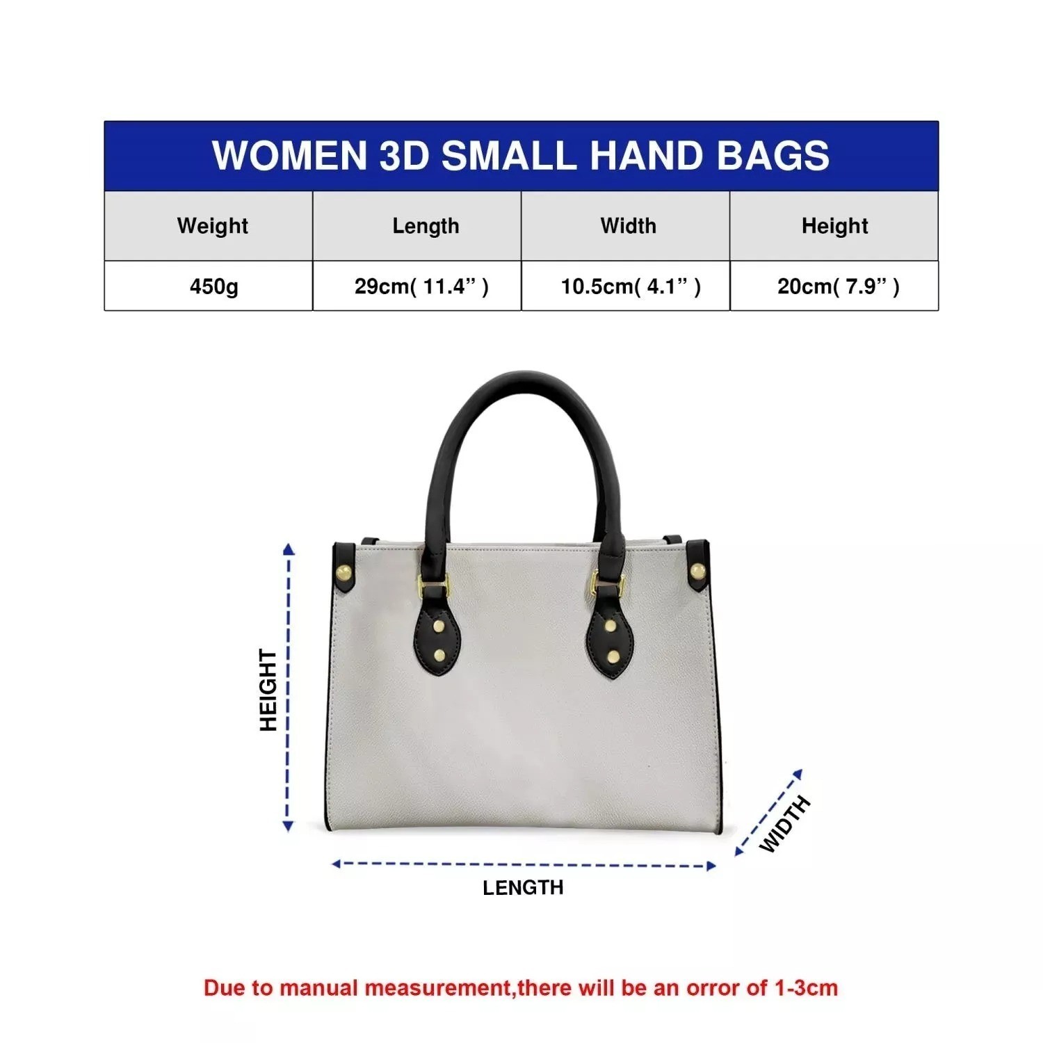 Premium Water-Resistant PU Leather Bag Elevate your everyday style with this elegant PU leather bag , designed to blend sophistication with practicality. Perfect for work, shopping, travel, or special occasions, it’s a versatile accessory you’ll reach for again and again. ⭐ Key Features ✔ Durable Material: Crafted from high-quality, water-resistant PU leather for long-lasting use and a refined look. ✔ Spacious & Organized: Features one main compartment and one side pocket to keep your essentials neatly arranged. ✔ Perfect Size Options: Available in three sizes (please refer to the size chart) to fit items like an iPad, wallet, phone, makeup, and more. ✔ Sturdy & Comfortable Straps: Carrying straps: approx. 27.5 in (70 cm) Two handles: approx. 14.5 in (37 cm) ✔ Elegant Design: Detailed stitching and high-quality metal buckles add a polished, sophisticated finish. ✔ Versatile Use: Ideal for workdays, travel, casual outings, or parties. 🧼 Care & Notes Colors may vary slightly due to lighting and monitor settings. New PU leather may have a slight scent—simply let it air out before use. Flat prints only (not embossed, textured, or raised) No embellishments such as rhinestones, glitter, or lights