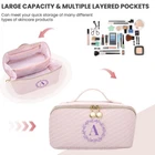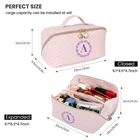 Personalized Initial Makeup Bag for Women Letter Cosmetic Bag Large Capacity Travel Toiletry Bag Cute Pink Make Up Bag PU Leather Toiletry Pouch Birthday Gifts for Women Mom Bridesmaid- A Product Details Color: Pink-A Brand: LUCKJOY MPN: Does not apply UPC: Does not apply EAN: Does not apply Material Features: Waterproof Material Type: Leather Item Dimensions L x W x H: 10.3"L x 5.5"W x 4.9"H Target Audience: Women Brand Name: LUCKJOY Age Range Description: Adults,Women,Girls,Teens Recommended Uses For Product: Makeup, Travel Pattern: Lay Flat Makeup Bag Color: Pink-A Water Resistance Level: Waterproof Closure Type: Zipper Personalized Gifts For Women: LUCJOY Personalized makeup bags allow you to create a unique and one-of-a-kind item. You can choose their initials, making it a special and personal gift or accessory. The initial cosmetic bag is an excellent choice as a Christmas gift, bridesmaid gifts, wedding gifts, Mother's Day gift, Valentine's Day gift, holiday gift or birthday gifts for women. They add a thoughtful and personal touch to the gift, making the recipient feel valued and appreciated. Large Capacity & Easy Accessibility: The Flat cosmetic bag size 10.3" x 5.5" x 4.9" and features a 180large opening design, allowing for quick and complete access to the contents of the makeup bag. It is equipped with 2 main compartments, 2 zipper pockets, and 2 small pockets, providing ample space to neatly organize a wide range of makeup items and achieve efficient partitioned storage. large capacity travel cosmetic bag. Portable Cute Travel Makeup Bag: The cosmetic bag is compact and lightweight, making it easy to carry in your purse, backpack, or luggage. This portable makeup bag allows you to touch up your makeup on the go, making it a must-have for daily use or when traveling. The makeup bag with handle design makes it more portable, and the handles provide a comfortable, secure grip whether you're traveling, going to work, or just moving from room to room. Double-way Zipper Design: The travel toiletry bag features exquisite gold double-way zippers that smoothly glide without getting stuck or breaking easily. The diagonal zip makeup bag can also be partially opened to remove specific items without exposing everything. This travel makeup bag features PVC dust-proof clear pockets on both sides for easy access and cleaning, perfect for storing brushes, sponges and powder puffs. High Quality & Wide Application: The makeup bag is crafted from high-quality waterproof PU leather, which not only lends it durability and shape but also makes it easy to clean. Additionally, this material can effectively preventsthe internal items from moisture, ensuring that the bag can withstand daily wear and tear while maintaining its shape over time. Our make up bag can as a travel makeup bag, toiletry bag, cosmetic cases, travel accessories pouch or a daily storage bag.