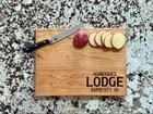 Design: Personalized Lodge Cutting Board or Charcuterie Serving Tray All items ship via USPS - please make sure your address is correct :-) Whether used as a charcuterie serving tray for snacks or cutting board, our bamboo, walnut and cherry custom boards are the perfect addition for the home and make the perfect gift for your loved one celebrating a birthday, anniversary, new home, wedding, etc! *** FEATURES *** • SIZES: We have multiple styles and sizes available. To see our current sizes available, click the drop-down menu. The photo slide contains a photo showing each side by side. Please note, the board with the juice groove only has the groove on the front side of the board. • THICKNESS: Bamboo Boards - Approximately 1/2" Thick; Walnut & Cherry Boards - Approximately 3/4” Thick • UNIQUE: Every board is unique with the grain and coloring varying throughout - no board is the same! • CARE INSTRUCTIONS: Hand wash only with warm water. Do not soak. Please apply mineral oil throughout the board’s life. • PERSONALIZATION/CUSTIMIZATION: Do you want the text placed differently on the board? Please don’t hesitate to contact us. All personalization notes can be entered in the personalization box when checking out. • SHIPPING: All cutting boards ship within 2 to 5 business days. • WHOLESALE ORDERS: Please don’t hesitate to contact us for information about wholesale orders. Processing times for larger orders may change. • NOTE: Colors can vary a bit on different monitors and screens. Any props included in photos are not included. Please be sure to double-check your address to make sure it is accurate for USPS delivery. If a package is returned to us due to an invalid address, the buyer is responsible for all additional shipping charges. We appreciate you supporting small business – best wishes! For items ordered with simple edits, we do not send proofs since the layout doesn't change from the example(s). However, in the event there are requests that change the layout from the example(s), we do send proofs for approval before making the product. If you'd like a proof before we make the product, please note so in the personalization box.