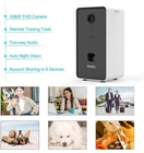 Multi-functional Pet Camera]: Combing the camera and treat dispenser, you can fill in your fur kid’s favorite treats in the treat dispenser and toss a treat to your dog(s) or cat(s) remotely via the APP while you are away from your home. The dog camera is designed with Advanced Motion Alert and Dog Barking Alert, then you can find out your pets’ emergency in time through your phone even you are away from the home. [Upgraded 1080P Camera]: With the 1080P camera, you could see your pet clearly day and night, take photos and record videos anytime anywhere; talk to your pet and hear his/her sound through the app; share your account to your family to log in at the same time so that you could enjoy the happy moment of your pet with your family, stay connected with your pet when you are not at home. let them feel that you are accompanying them. [Practical Audio]: The dog camera is built-in high-quality microphone and speaker for easy and clear talking and listening. Allow you to enjoy talking or treating your lovely dog(s)/cat(s) with their favorite snack, which let them feel that you are with them and pacify them. With 165° view Wide-Angle pet camera, you could also use it as surveillance device while you are away to see what’s happening in your home, talk with your family members, or scare away Burglar. [Easy 2-Min Setup with Video Guidance]: 1) plug in to a power outlet using its USB cord 2) download the Iseefeeder app 3) connect to your 2.4GHz & 5 GHz home Wi-Fi network. Add voice control by combining with an Alexa device, add Iseebiz to your Alexa skills, ask Alexa to toss a treat to your fur kid when you are home. This device is compatible with 2.4G and 5G Wi-Fi, with Bluetooth connectivity, which make it is more convenient, easy, and fast to connect the pet camera with the APP. [2 Different Ways to Place]: The cat camera includes the suction cups and hanging holes, which could make it stand still on flat and smooth surface, no need to drill holes to fix, easy to remove. You could also hang the dog(s)/cat(s) camera on the wall, easy for you to get the right angle to see what’s happening in your home.