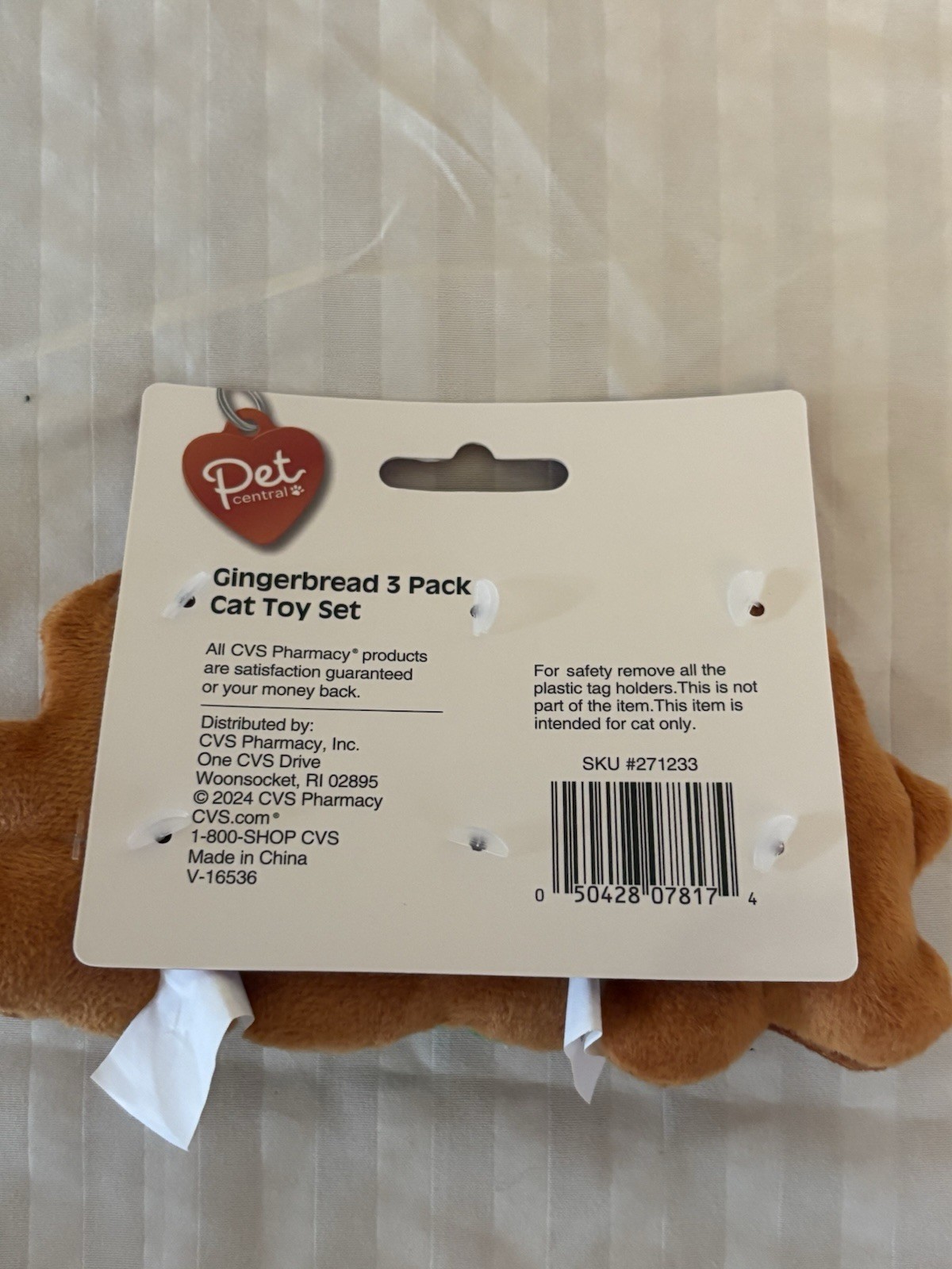The Pet Central Christmas Gingerbread 3 Pack Cat Toy Set is a festive and fun toy set designed for cats by CA&T. Each toy in the set contains catnip to keep your feline friends entertained and engaged. The gingerbread theme adds a holiday touch to playtime, making it a perfect gift for cat lovers during the festive season.