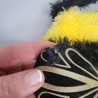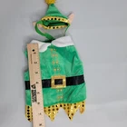 No size listed, but I'd say XS and probably would best fit a tiny baby of maybe 5 or so lbs. I can barely get them on my 9lb pup.... she wore these when she was a pup. One wing does have a flaw as shown in picture. Both have matching headbands that are elastic and velcro at the waist. T6-14