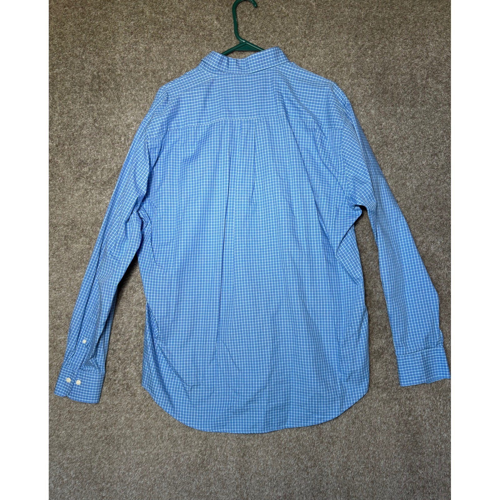 A classic blue gingham button-down shirt. This long-sleeved woven shirt offers a comfortable and stylish option for various occasions. Its timeless pattern and quality construction make it a versatile addition to any wardrobe. Perfect for a smart casual office day, a weekend brunch, or a relaxed evening out. Department: Men Sleeve Length: Long Sleeve Pattern: Gingham Type: Dress Shirt Collar Style: Button-Down Material: 100% Cotton Top Cuff Style: Barrel Cuff Features: Non-Iron Neckline: Collared Length: 29" Pit-to-Pit: 26" Keywords: Peter Millar, Mens Shirt, Dress Shirt, Button Down, Long Sleeve, Gingham, Blue, Cotton, XL, Men's Fashion, Casual Shirt, Smart Casual, Preppy Style, Work Shirt, Weekend Wear