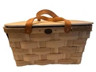 This Peterboro picnic basket is the perfect addition to any outdoor excursion. With its blue gingham liner and leather handle, it adds a touch of class to your outdoor dining experience. Measuring 17.5 inches in length and 12 inches in width, it has plenty of room for all your picnic essentials. The item depth of 9 inches ensures that you can fit everything you need for a successful picnic. The basket is in excellent used condition, ready for your next adventure.