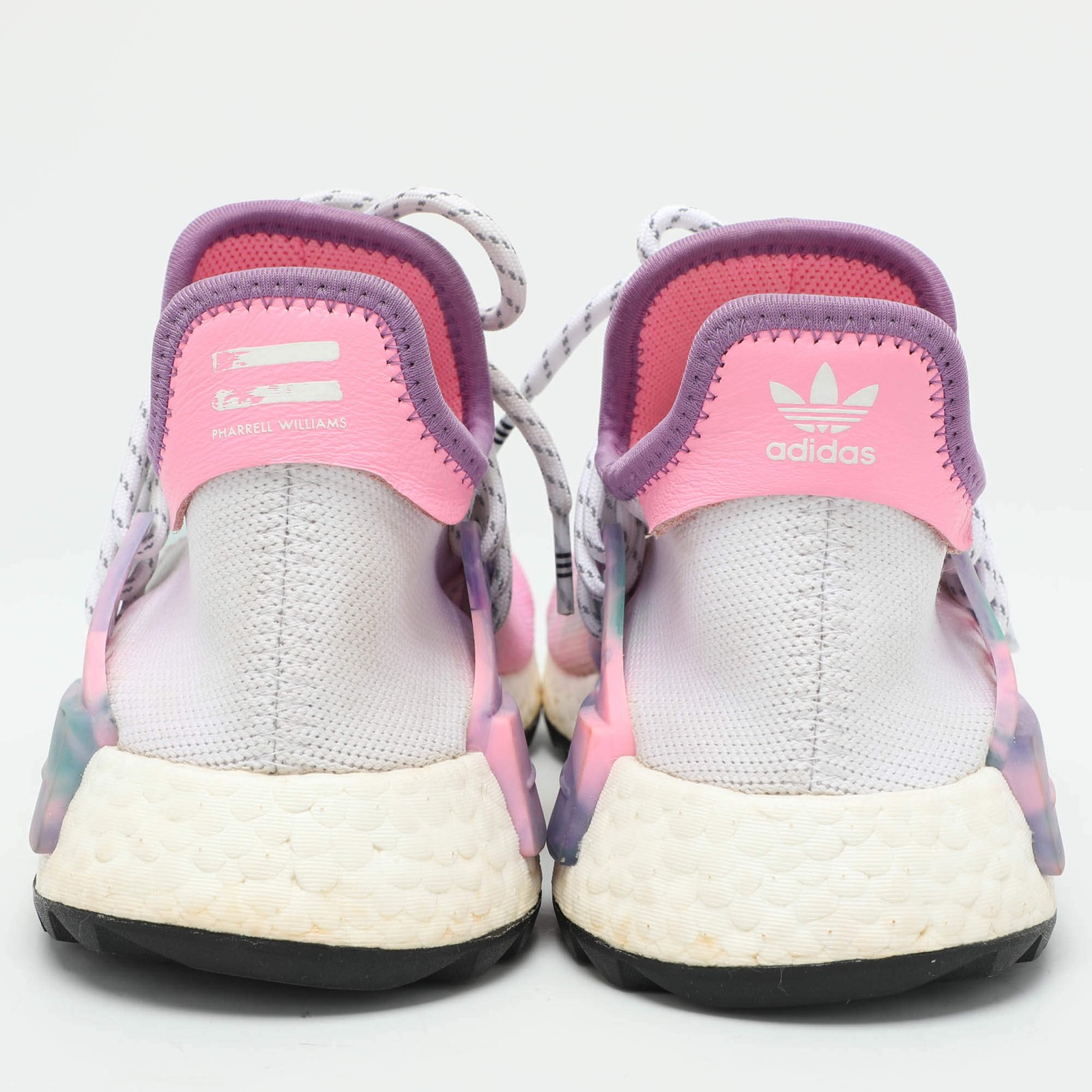 Our eBay Store About Us Contact Us Add to Favorite Sellers Pharrell Williams x Adidas Multicolor Knit Fabric Hu NMD Low Top Sneakers Size Experience vibrant style with Pharrell Williams x Adidas Hu NMD sneakers. These low-top kicks feature a multicolor knit fabric that ensures both comfort and eye-catching appeal. With signature detailing and a snug fit, they offer a bold and dynamic addition to any collection. Ideal for those who appreciate creativity and innovation in footwear. Product Details Brand Pharrell Williams Color Multicolor Includes The Luxury Closet Packaging, Extra Lace Outsole Length 29 cm Outsole Width 10 cm Size US 6.5 (EU 39 1/3 /UK 6) Certified by The Luxury Closet This item has gone through a detailed authentication process overseen by our experts. We offer a lifetime guarantee of authenticity on all our items. How We Check The in-house team of experts at The Luxury Closet is highly trained to verify the authenticity and the condition of the luxury products. They ensure that only 100% authentic items are put on sale.The evaluation process is unique with its own mix of assessment criteria and differs according to the category. Each item is evaluated based on the following combination of hallmarks, hardware, stitching, symmetry, material, craftsmanship, stamping, codes, hologram stickers, and packaging. Our authenticators also check if the items have been modified or amended (e.g., aftermarket diamonds, replaced batteries, repaired bags, etc.) International Buyers Import duties, taxes and charges are not included in the item price. These charges are the buyers responsibility. Please check with your country’s customs office to determine what these additional cost will be prior to buying.
