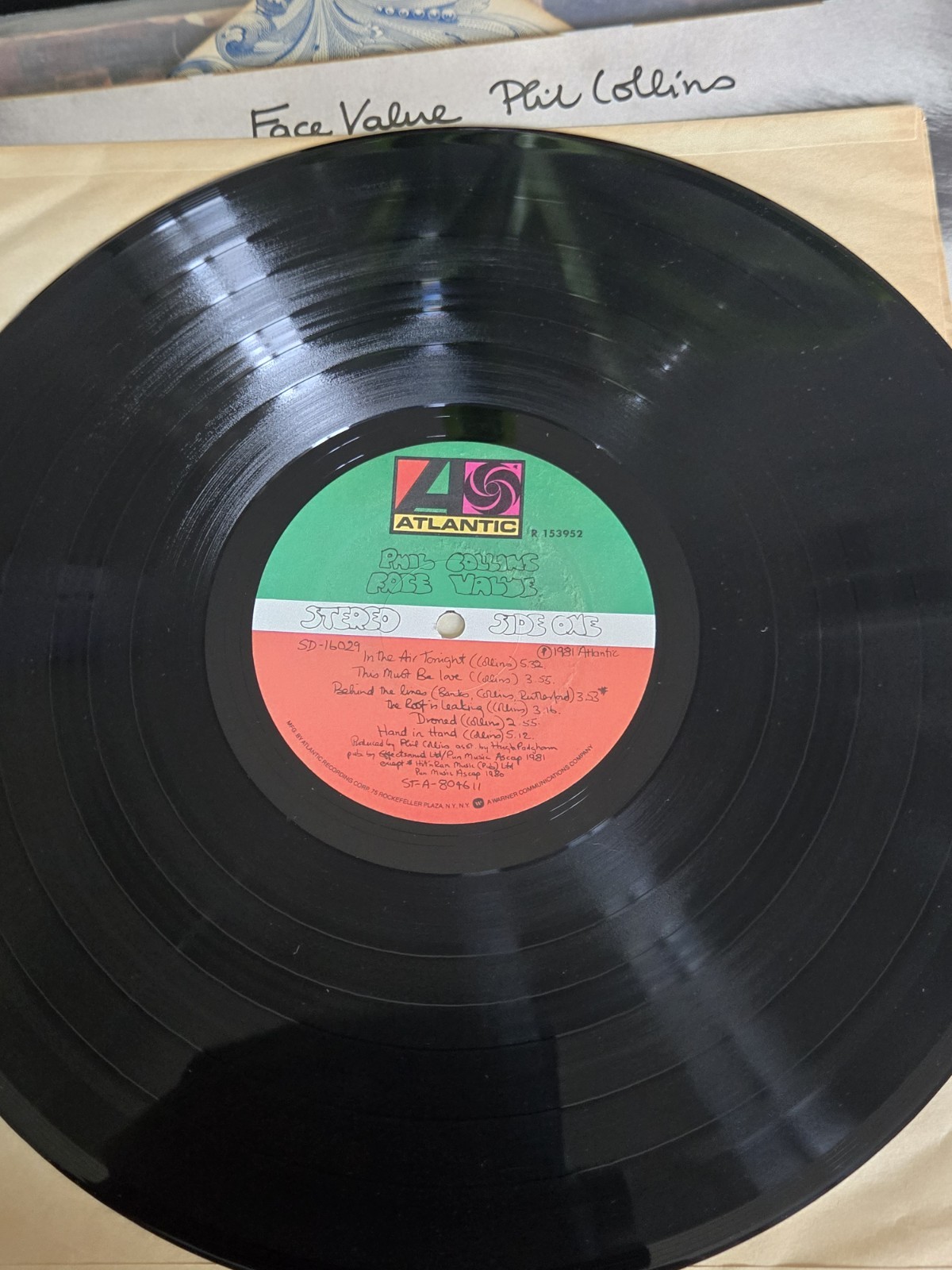 The product is a first press original 1981 vinyl of Phil Collins' album "Face Value" on the Atlantic Records label. This LP comes in a 12" record size, with a speed of 33 RPM, and is in near mint condition. The record is in English and features stereo audio channels, housed in a cardboard sleeve with the original cover. This vintage vinyl from the 1980s is a must-have for fans of classic rock music and collectors of original Phil Collins recordings.