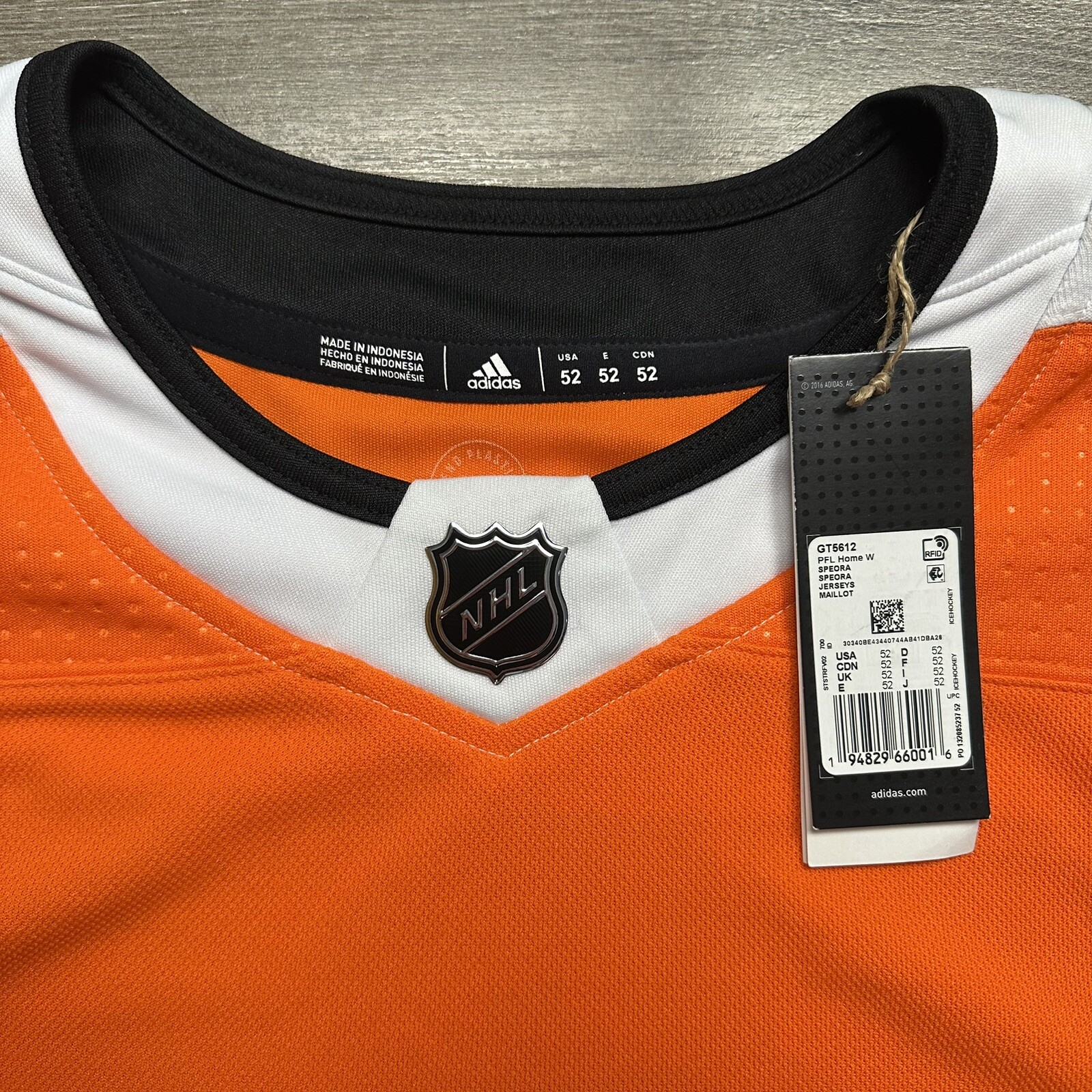 Size:52Color:OrangeGender:MenModified Item:NoOfficially Licensed:YesCountry/Region of Manufacture:IndonesiaProduct:JerseysBrand:adidasLeague:National Hockey League (NHL)Sport:Hockey-NHLTeam:Philadelphia FlyersPre & Post Season:Regular SeasonPlayer:none