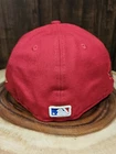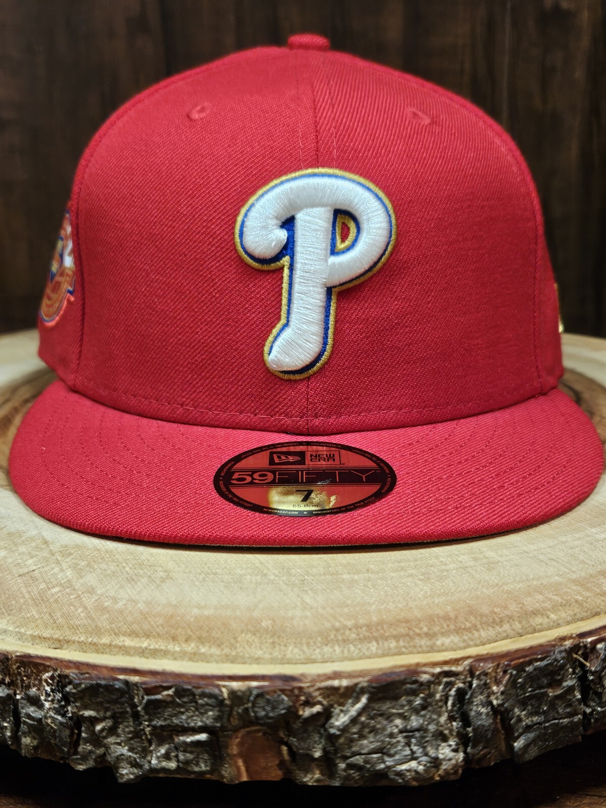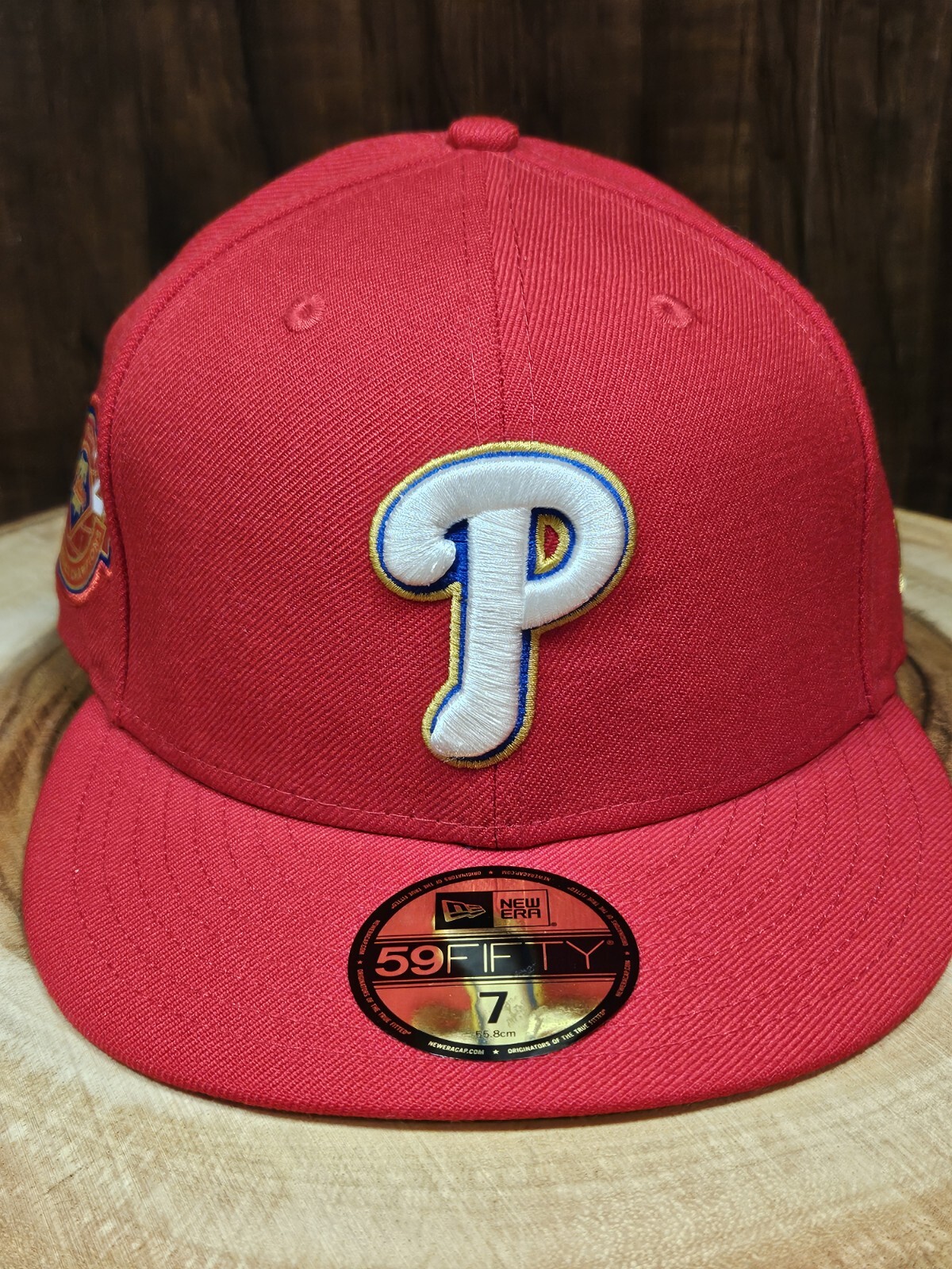 Show your love for the Philadelphia Phillies with this stylish New Era 59Fifty fitted hat cap. The red color and solid pattern make it a classic accessory that will complement any outfit. It is perfect for any occasion, whether you're going to a baseball game, traveling, attending a wedding, or even wearing it to work. The cap features a satin inside and a 2X World Series Patch, making it a must-have for any sports fan. Its fitted design ensures a comfortable and snug fit, while the streetwear and sports themes make it a trendy accessory. This MLB baseball cap is a great addition to any fan's collection, and it's perfect for those who want to show their support for the Philadelphia Phillies.