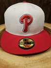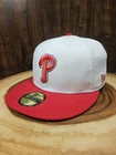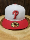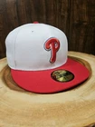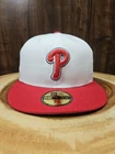 Elevate your accessory game with the sleek Philadelphia Phillies New Era 59Fifty Fitted Hat. A staple for any die-hard fan, this cap comes in a crisp white color, featuring an iconic design with the team's alternate colors. Its fitted style ensures a snug and comfortable fit, making it ideal for a variety of occasions, from a day at the office to a casual outing. Crafted for durability and style, this baseball cap is a versatile addition to any wardrobe. The hat is made by New Era, renowned for their quality and commitment to sports fashion, and is designed to complement the modern man's lifestyle, whether he's traveling, attending a baseball game, or simply enjoying a cocktail party. With its solid pattern and streetwear appeal, this cap is a subtle nod to sportsmanship and a stylish choice for any event.